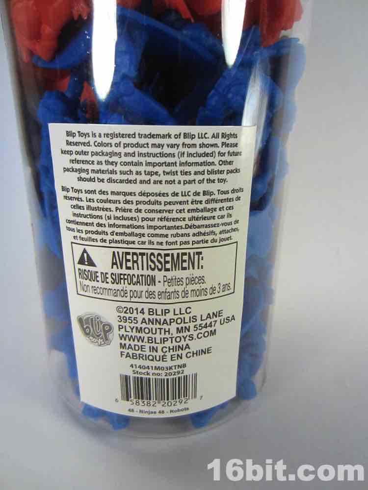 Item No.: No. 20292 Manufacturer:Blip Toys Includes:96 figures in a tube Action Feature:n/a Retail: est. $5.00 Availability:August 2014 Other: 3 red ninjas, 3 red robots, 3 blue ninjas, 3 blue robots