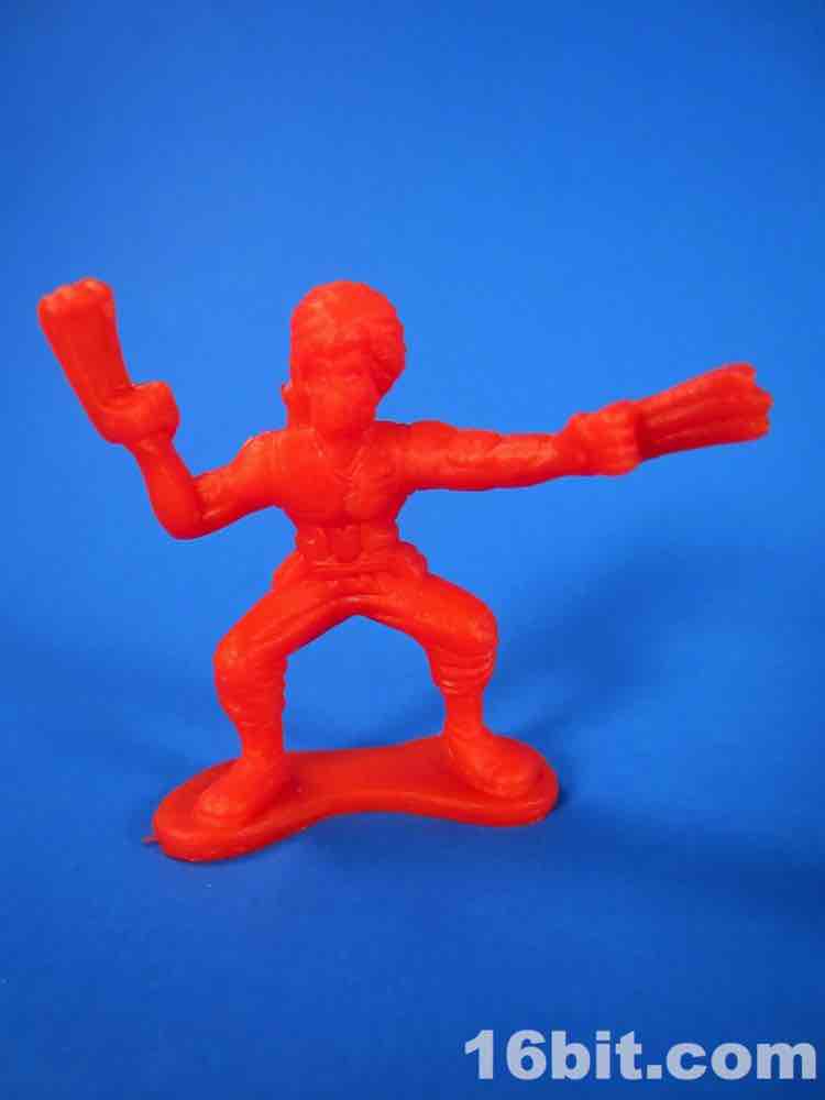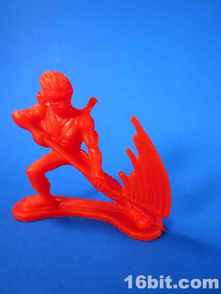 With clawed weapons (like Vega from Street Fighter), a bo staff complete with severe motion line, and other clawed weapons, it's a pretty well-thought-out set. Someone clearly decided to go against many of the conventions to provide a varied squadron of 48 ninja warriors, although the lack of fun accessories like nunchucks or throwing stars is a bit of a downer. The bulk of the figures stand just fine - a couple are wobbly, but as you get 8 of each you're going to get at least one dud in the bunch. The sculpts are a little soft, and the faces are pretty clean.
