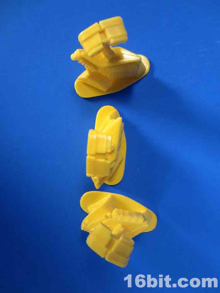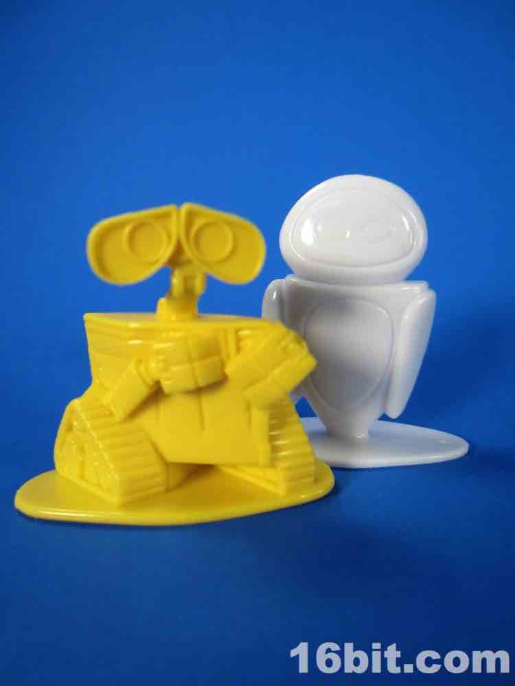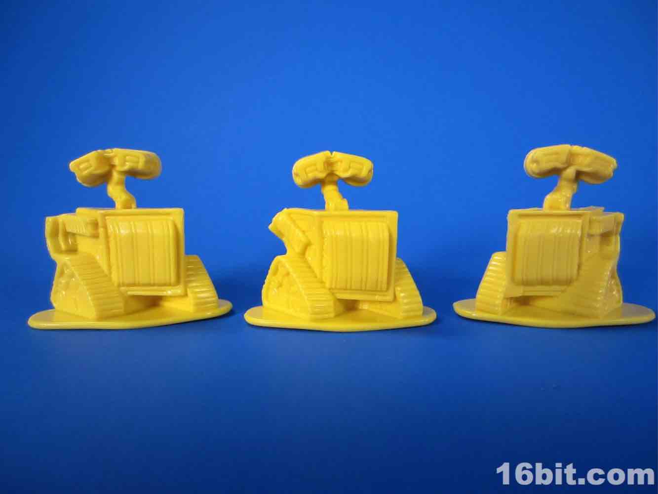 The Umbrella-Bot is the tallest at a hair under 2 1/2-inches tall, and its skinny design requires no strange perspective sculpting. AUTO is similarly flat - there's not a lot to do here. Each figure is fully-sculpted front and back, and the glossy figures seem pretty durable. At an average price of 26 cents each, they really don't have to be all that fantastic for the money - but hey, it's the cheapest EVE and Wall-E you can buy.