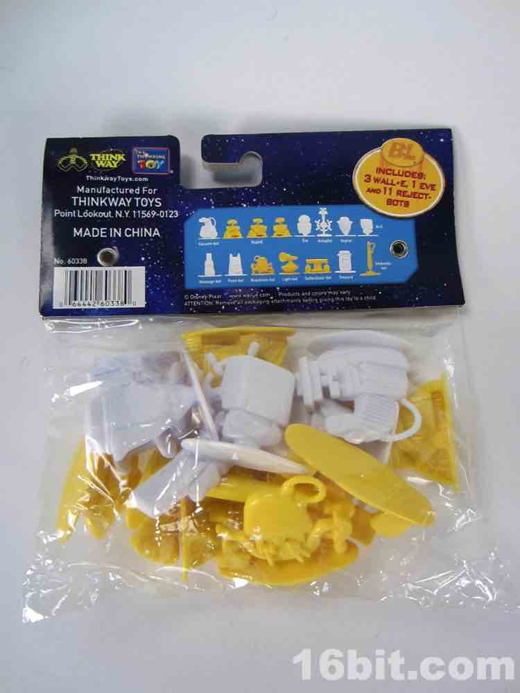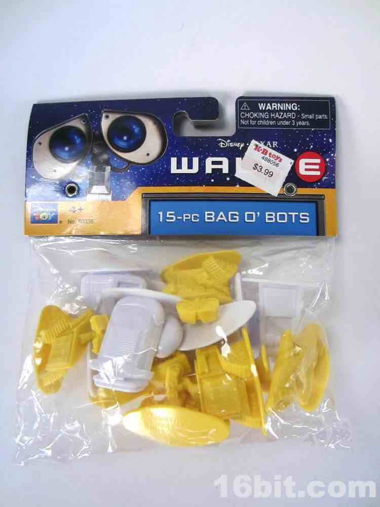 I'm generally interested in toys. I work for a company that specializes in, for lack of a better term, character collectibles - but I'm in it for the toys. The Wall-E 15-Pc Bag O' Bots was something that totally got me - Kay-Bee toys carried this before they sailed off to oblivion, and at $4 I wasn't sure if it was too cheap or too expensive. I've recently been doing a lot of looking around at this kind of toy - Hasbro has 9-packs for $5, but Imperial Toy had - no joke - 90-figure sets at Walmart for a mere $4.50. Those weren't licensed, but still - these things are cheap. You've no doubt seen green army men at the dollar stores, so this kind of toy is about as cheap as they come.