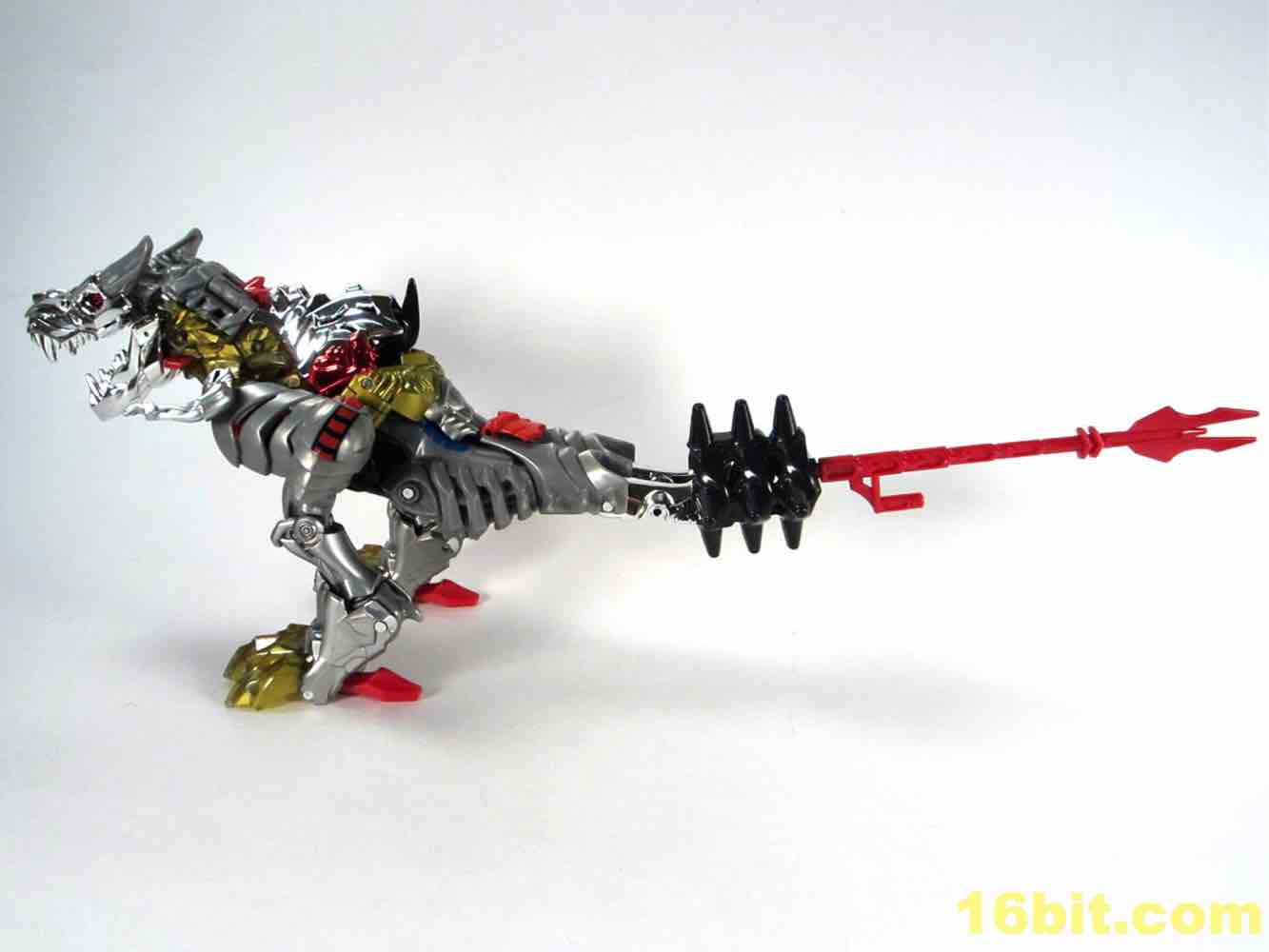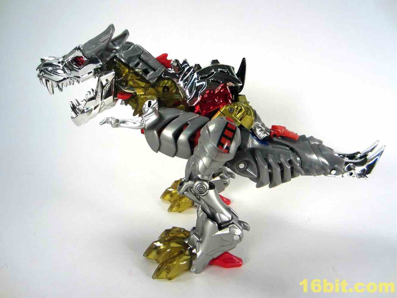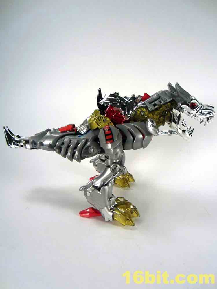 One of the most clever - and surprisingly effective - features is in the T-Rex feet. Instead of gold chrome, a clear, murky yellow was deployed and it's shockingly pretty. I want to see more of it - while the red loincloth, well, I could do without that. The red chrome eyes look gorgeous, and the red chrome crotch is probably not going to age well if you ever transform this toy.