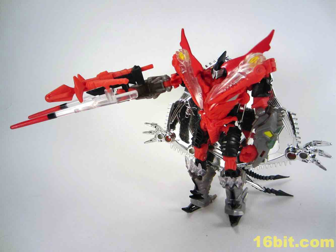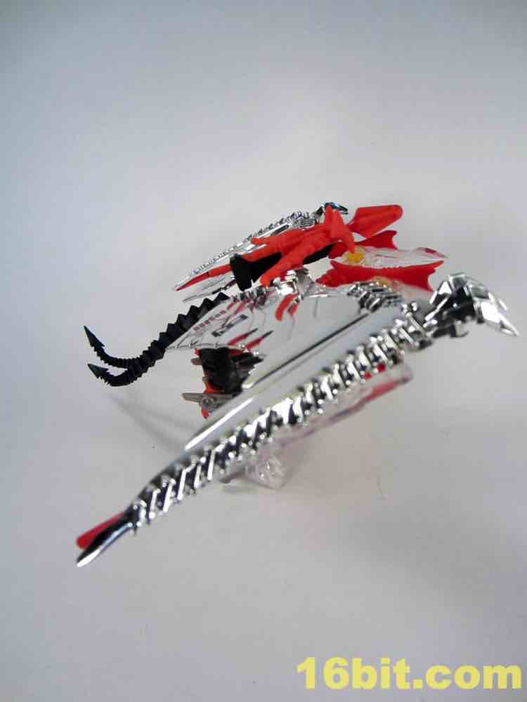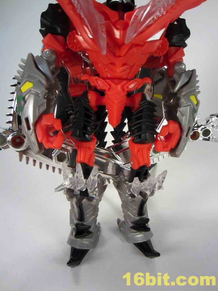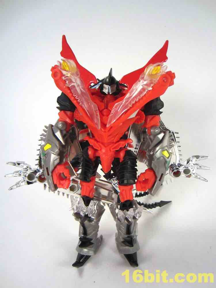 Transformation is the same as Deluxe Strafe, and fits together surprisingly easy given the chrome and clear parts. I'm impressed - basically flip out the feet and wings, move around the 3 heads, and you're mostly done. It's easy - the easiest in the set by far.