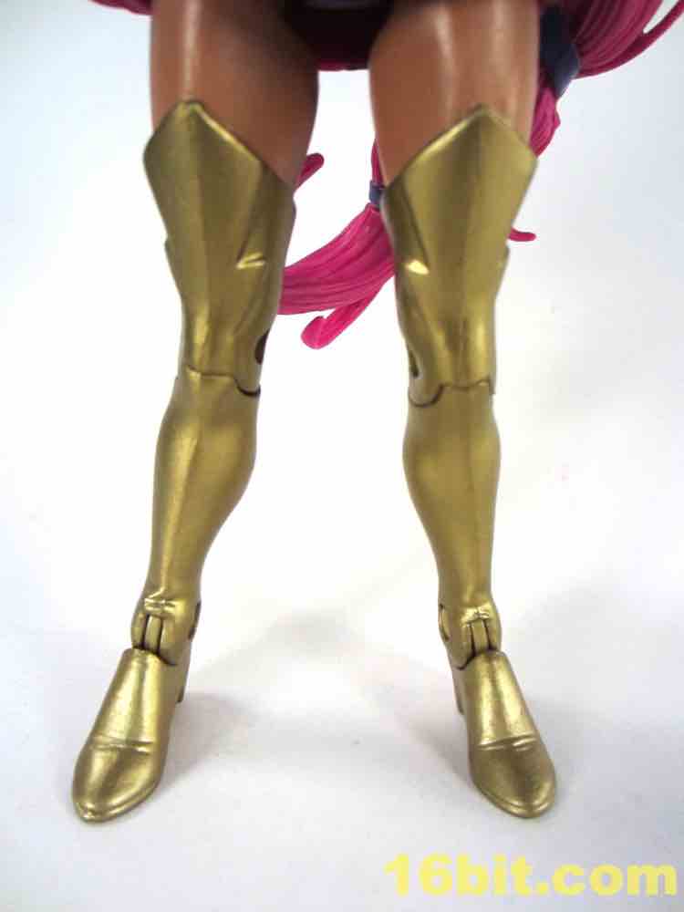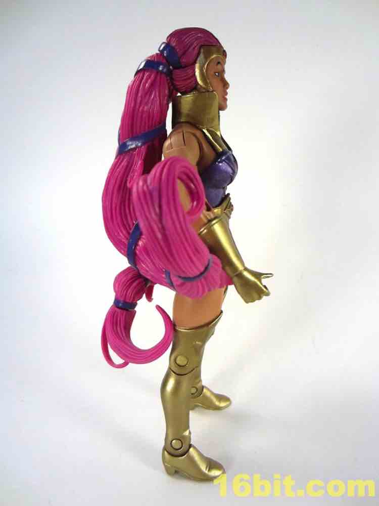 Depending on how generous you feel like being, she sports about 21 points of articulation and nice, stiff ankles and legs. She doesn't feel like she's going to plummet off a shelf, and I can't tell you how much that means to me as toys get larger, more detailed, and more expensive. I appreciate that the figure looks like a colorful update of a late 1980s doll, but rendered as an action figure in a collector line largely driven at adult men. I think she looks way better this way, and that face just says "I'm going to beat the snot out of you" while her outfit says "let's go local sports team." It's a bizarre, wonderful juxtaposition but that's 1980s toys in a nutshell. She's cute, she's evil, and she's a keeper - but I am a little nervous about the future of that gold paint, as really good, really rich metallic gold paint sometimes molts and melts in a greenish goop a decade down the road. Be careful and keep an eye on these, as they may need touch-ups two or three presidential elections down the road.