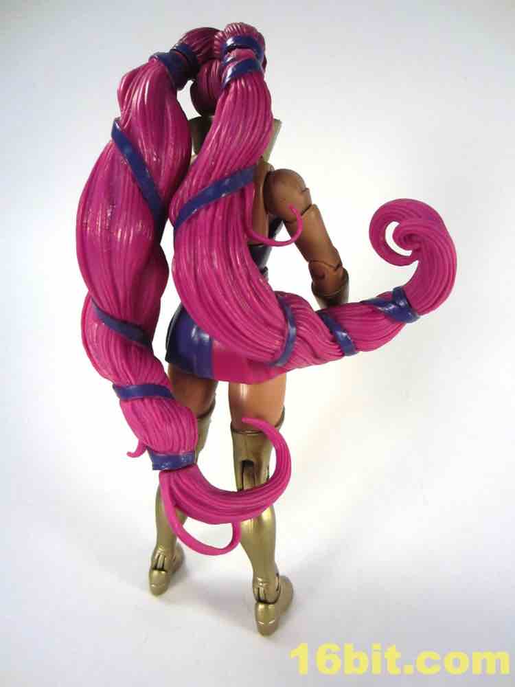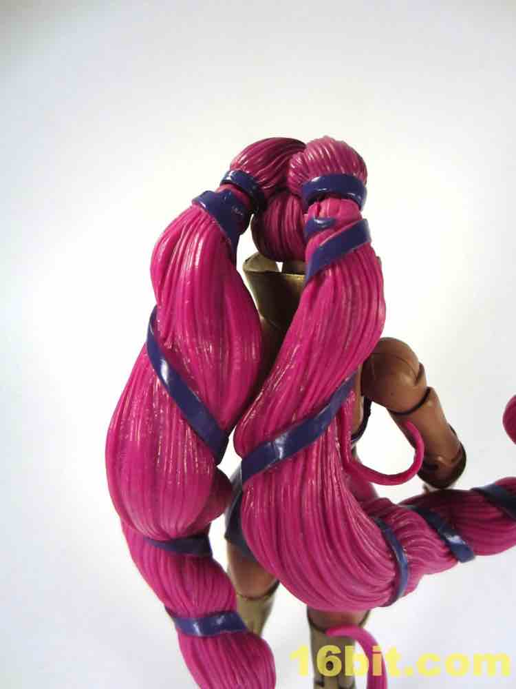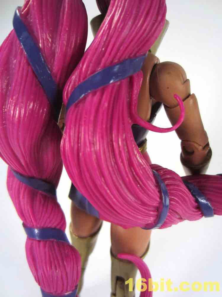While the original doll had hair down to the floor, this one has twirling, twisting, and dynamic-looking strands of pink hair hanging off her head. Each one is held in place with pink ribbons, barely constrained and a few smaller strands seem to be trying to leap out to attack someone or some thing. As such, she looks far more lively than other figures in this line - it makes a big difference to have hair that could probably strangle you. It does not appear as if it was intended to grip anything, but I appreciate each tail being able to bend-and-swivel.