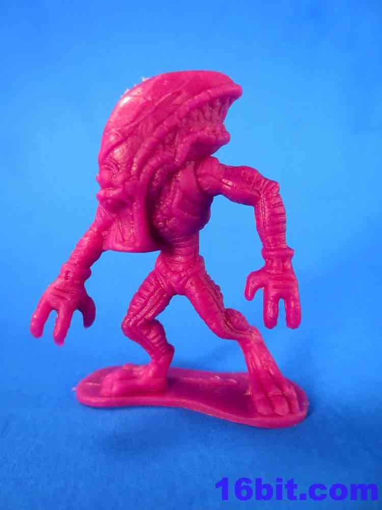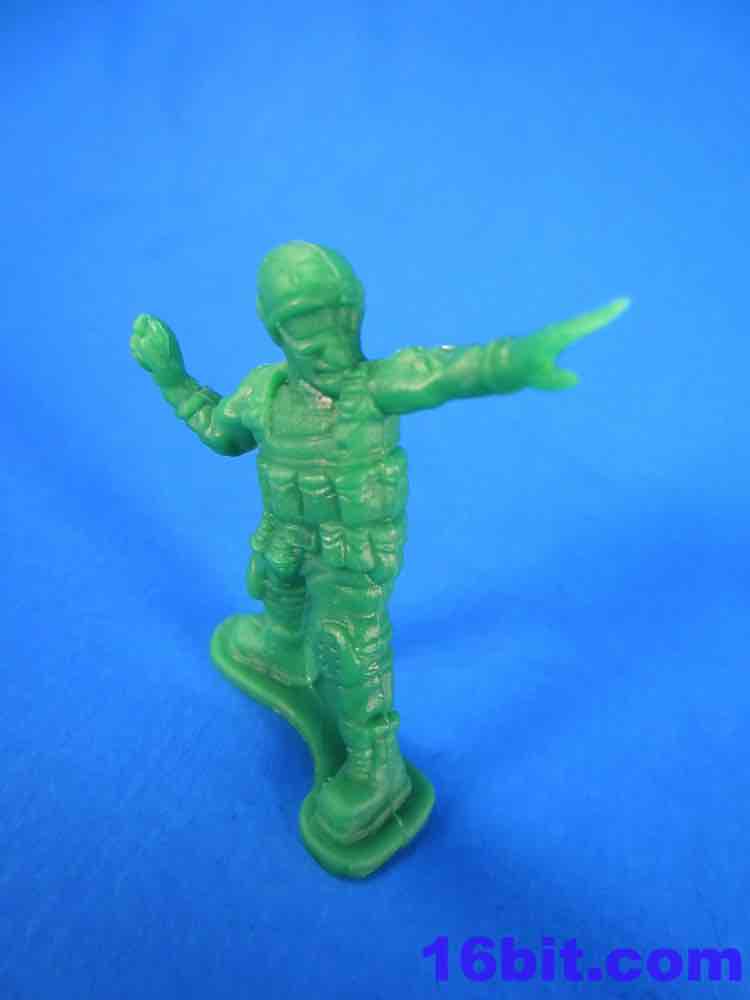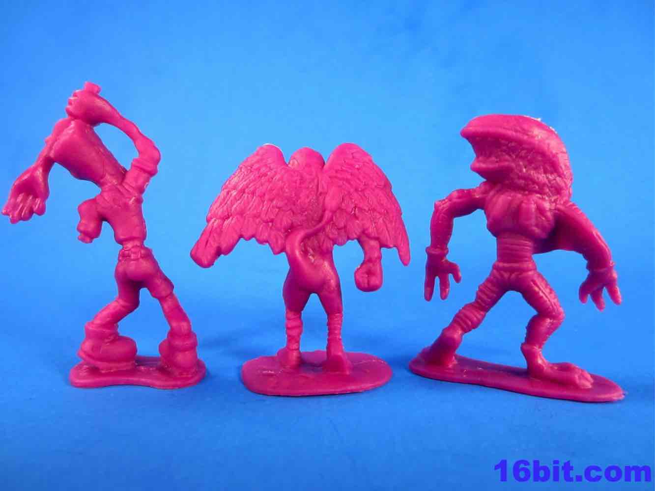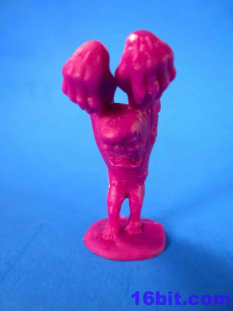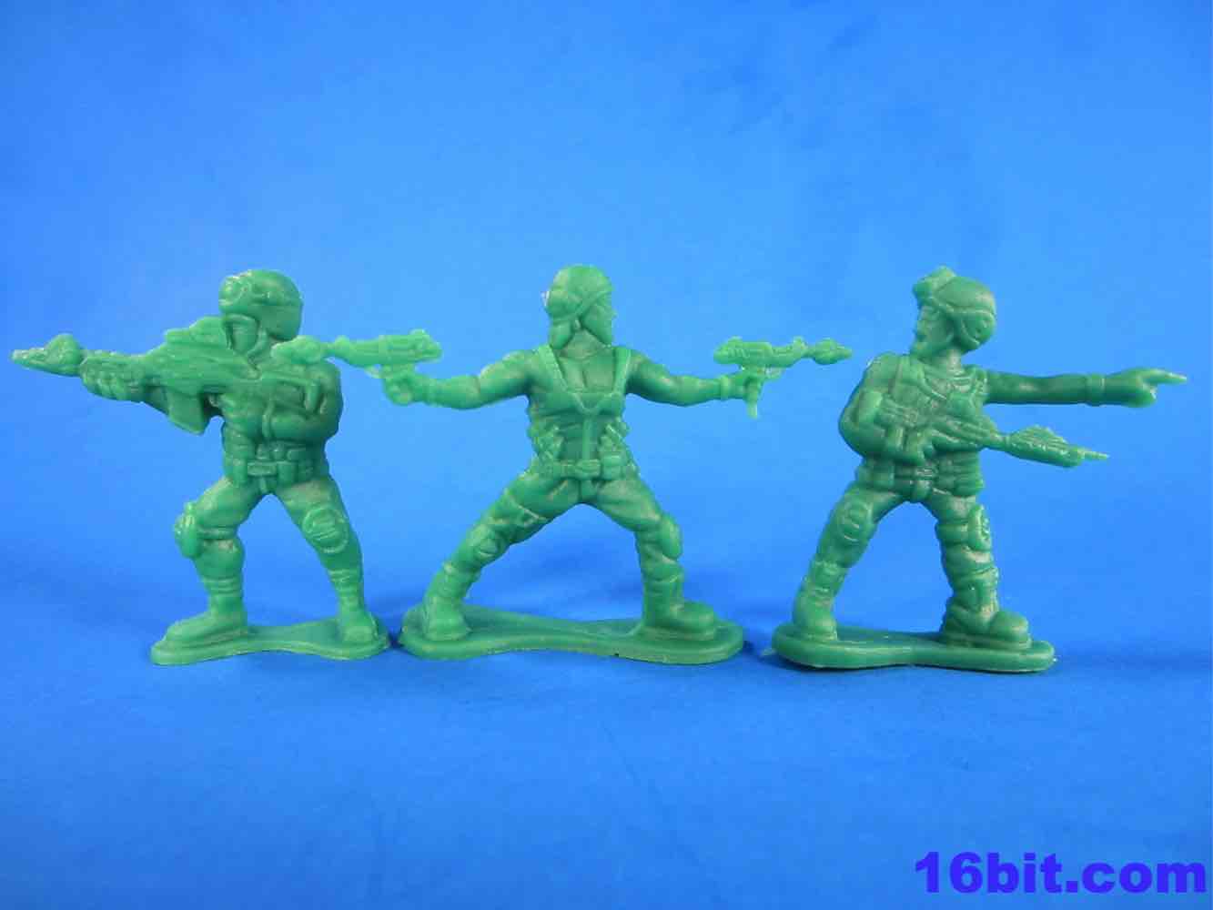 The Army Men have a lot of spirit, but they're kind of crappy. You get some great homages to previous Military man toys - a guy throwing a grenade, a sniper - but you also get a funky guy with a vest, no shirt, and two ray guns. The figures aren't bad in concept as they seem modern with lots of padding and armor. The overall look from a distance is great - but if you get up close, you'll see the seams are down the middle of their faces leaving messed-up goggles, noses, and mouths. Because of this, some look sort of like a cyclops or otherwise inhuman - if you can't see the faces, though, the poses are actually pretty great. A kneeling guy with a gun and binoculars is a nice touch, and the overall collection is quite varied. The sculpting is quite soft - to make cheaper figures, I assume this is intentional - and I'd say this is a pretty decent figure for about five cents. It ain't great, but if it didn't have the monsters I'd say pass on it.