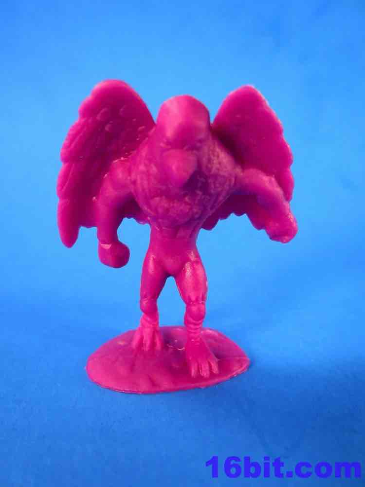 Another creature clearly draws from the original Alien design, but adds a giant central eye as well as turns the back of the dome into a second, large mouth. The bony arms and legs vaguely resemble the original xenomorph, but it's different enough to avoid any legal problems. The zombie seems to look like a lot of recent zombie toys - cartoony, dismembers, wonky legs, and a general decaying jaw. After Imperial's tube of zombies, Jakks Pacific's SLUG Zombies, October Toys' ZOMBIE, and others to be determined I assume that this is just kinda... well, it's here. It'll probably be popular. Let's move on to the winged bird man - he has pretty wonderful wing detail, decent leg detail, and pants. I assume this means he's a mutant. The plastic quality is acceptable, it seems there may be some problems pulling these from the molds without distortion. This does nothing to hurt the lion's tail, though, so it's certainly a well-executed creature with a textured display base.