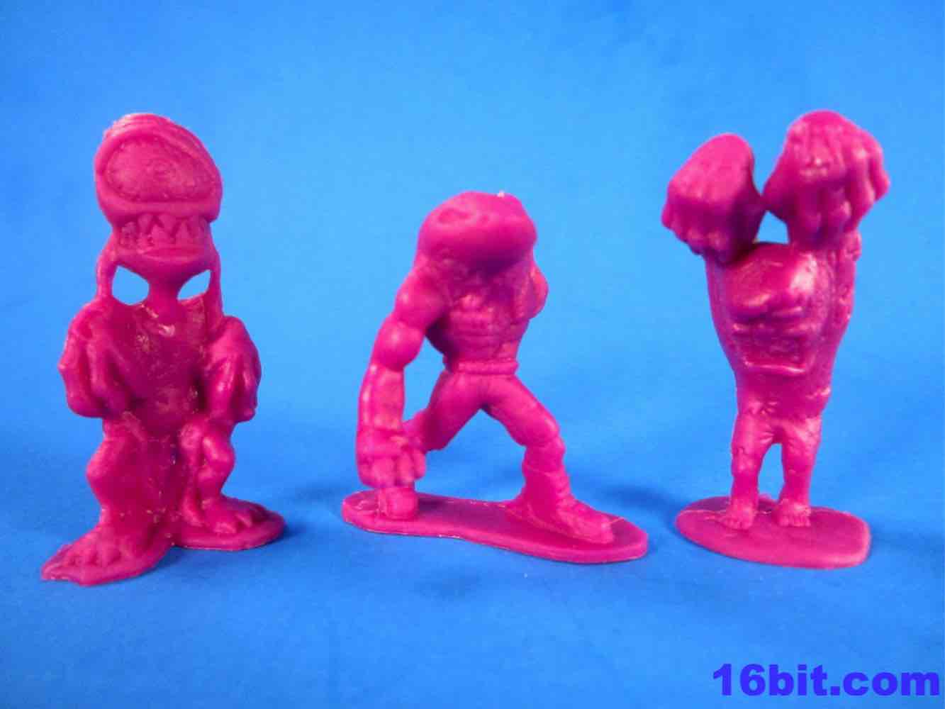 As I've been dabbling in this category lately, I can absolutely tell you that as quality goes, these guys are on the lower end of the spectrum. Tim Mee's are quite good. Hasbro's are excellent. These? Well, if you can admire the best skee ball prize you never got, that's what this is. Cheap, fun little things that you should probably buy a tube of, keep a set, and give them away to friends or trick-or-treaters on Halloween. I got my money's worth, but truth be told I wish I had some buddies to trade with or give these away to. I don't need 96 of them - 24 or 36 would be excessive. If you're torn between this set or the Ninjas vs. Robots set, go for the Monsters vs. Military. The creatures are the most fun and imaginative of the lot, even if you ignore the army guys.