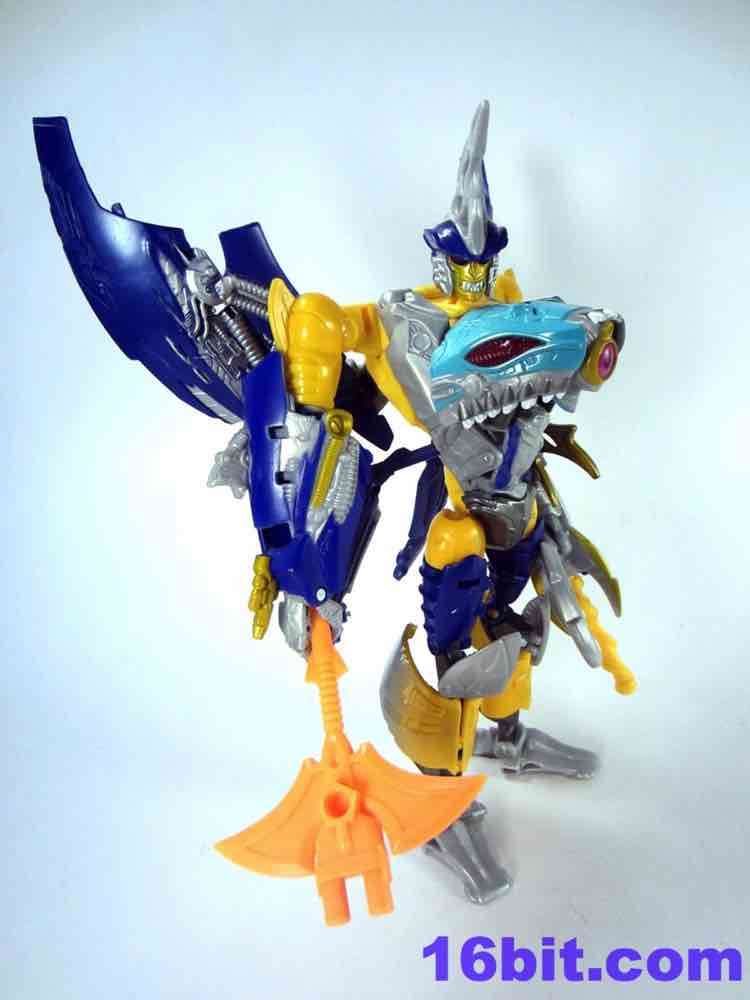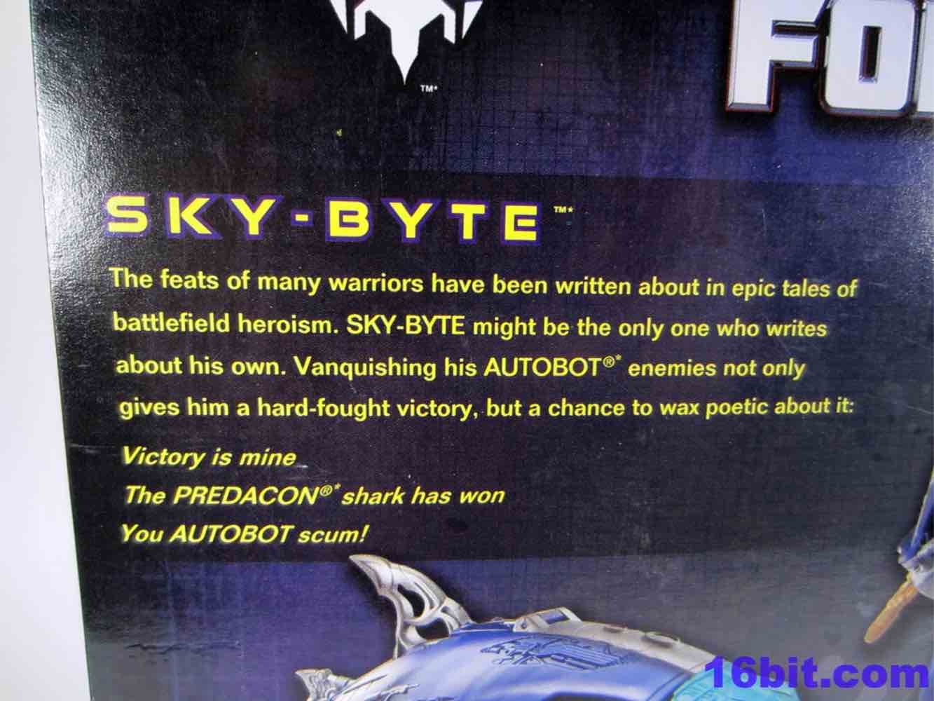 While I like many of his features, like articulated hand with moving thumb and fun twirling tail attack, I can't say it's a ton of fun otherwise. Each mode has its merits, but the conversion process is a drag and the joints in the arms could be a little sturdier. The deluxe scale of toys seem to be more fun more consistently, but when is the last time we got a giant shark? Never! So this is worth a few bucks, although it would seem there's a narrowing gap in terms of value between the deluxe and voyager toys. If you think you want a Sky-Byte, go get this toy because it is fun enough to be worth having. However if you're not willing to put up with a little frustration, maybe you should get something else.