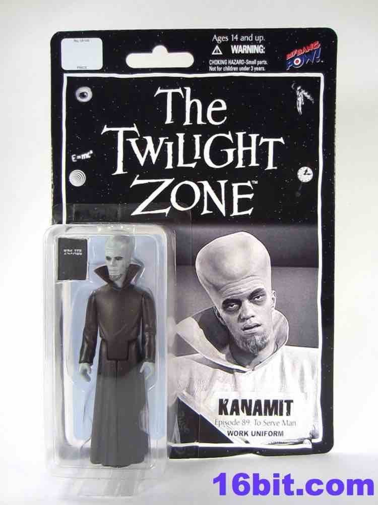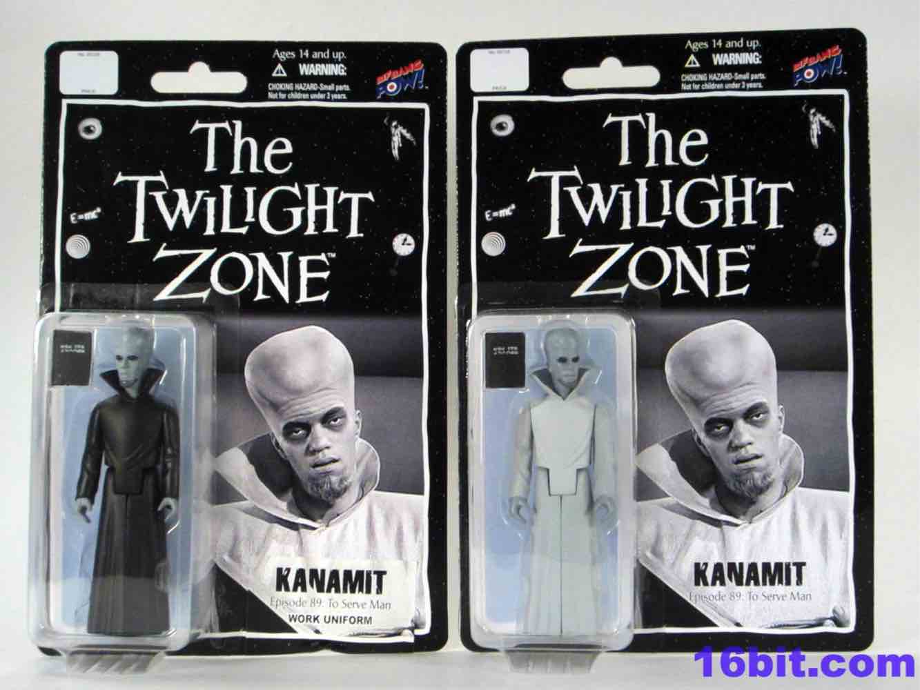 From another one of The Twilight Zone's iconic (and oft-lampooned) episodes is Kanamit (Work Uniform) from "To Serve Man." As he was played by the giant Richard Kiel, the figure is also a smidgen taller at about 4 1/4-inches. He has 5 points of articulation and is sold in 3 flavors - white outfit, black outfit, and full-color figure (which wears a white outfit).