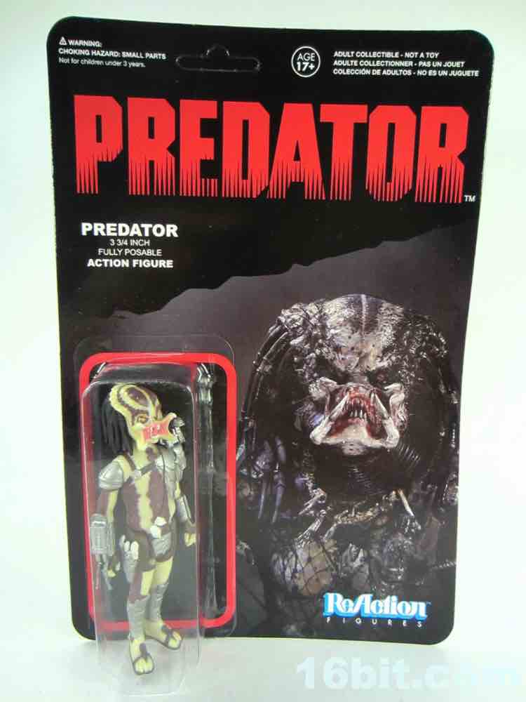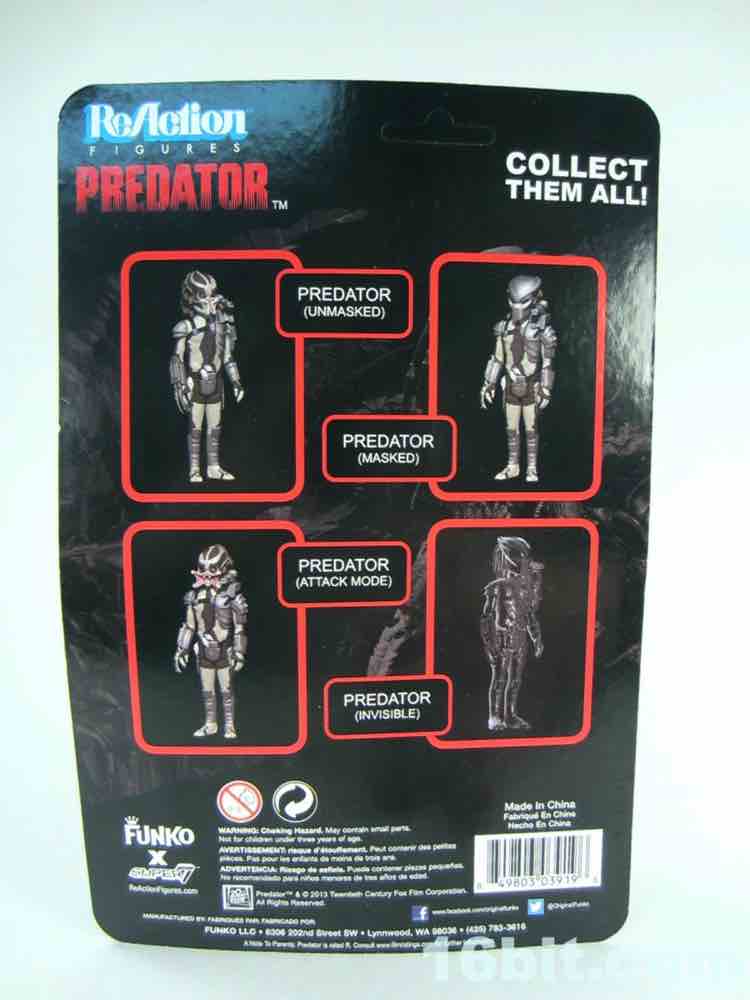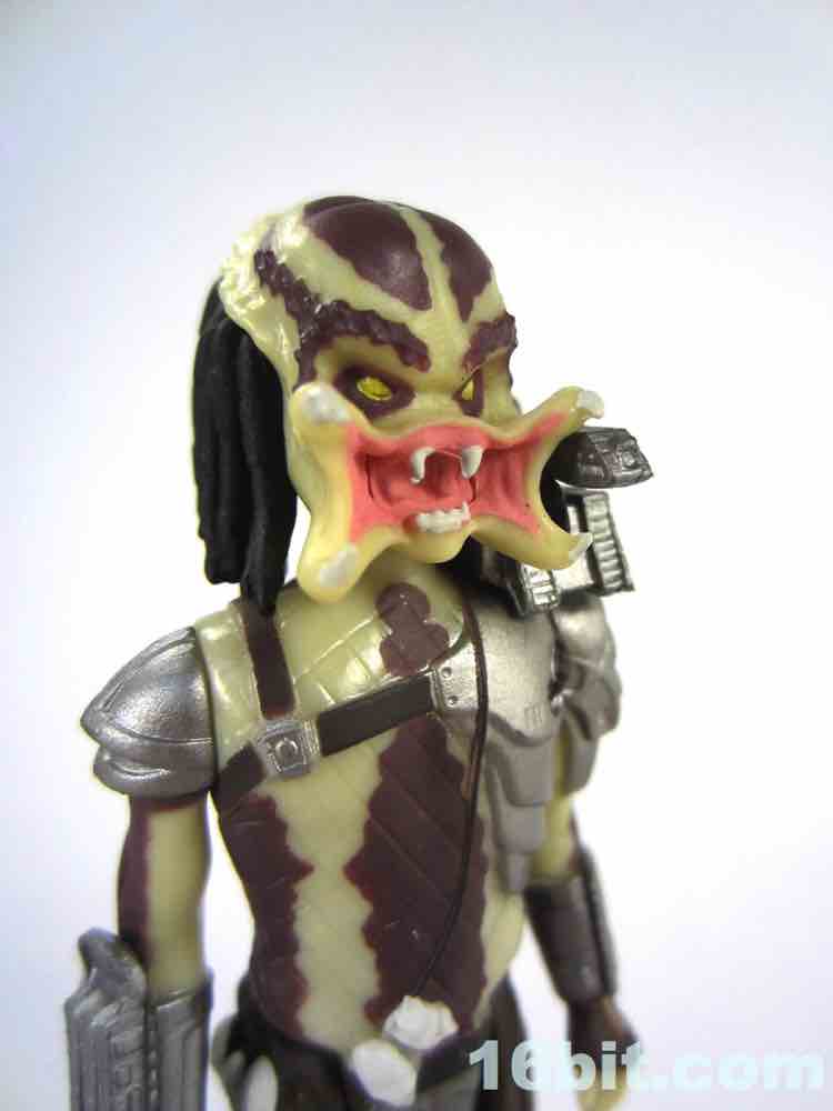 As a kid, I was enamored with movie creatures even though I wasn't exactly permitted to see the movies. This didn't stop me from buying the action figures, and this Predator (Attack Mode) is a most welcome addition to my toy stash. I like the big, chunky Kenner Predators of the 1990s, and this will go with all of my 1980s stuff - and of course the ReAction Alien figure. If you're looking to buy one, note that all the Predator packaging looks quite similar - so be sure you squint at the head before heading to the register, or just order online. I looked at the SDCC Predator a few months back, and I liked it - and this is basically the same figure, but decorated differently and with another head sculpt. There are 5 Predators with 3 unique heads between them - 3 are helmeted, 1 has Attack Mode, and 1 has closed mandibles.