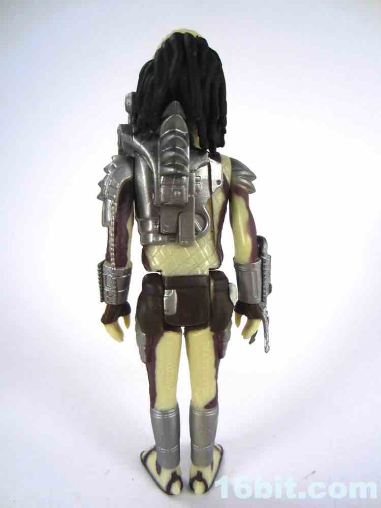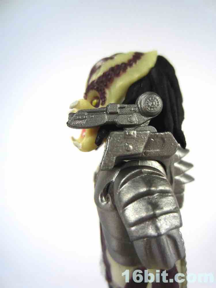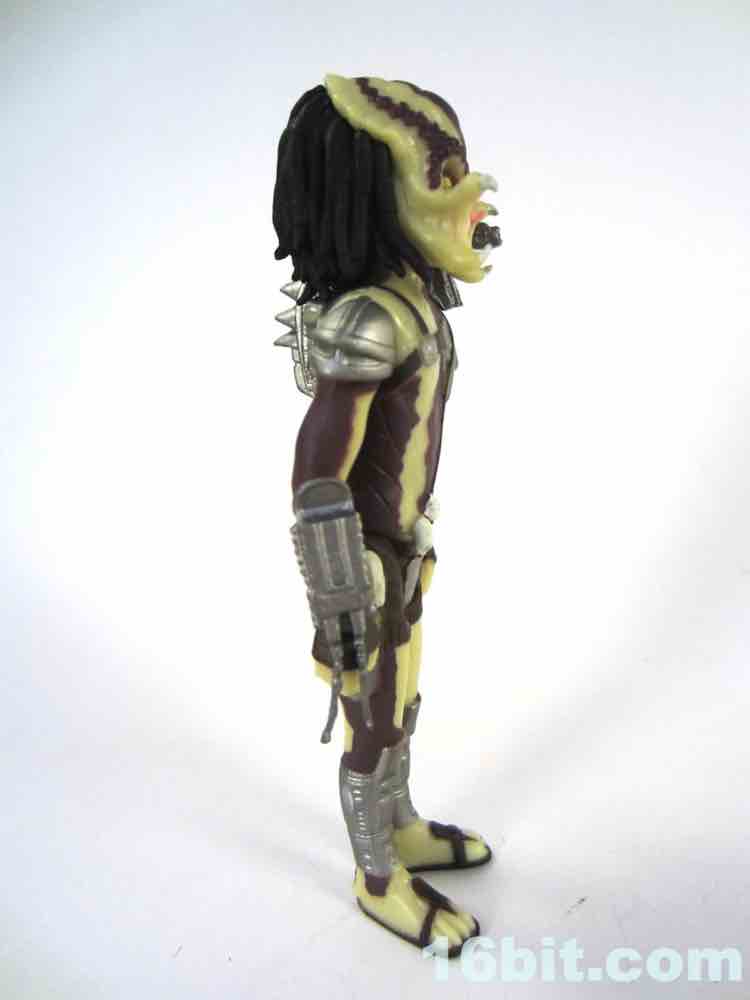 As always, the figure is based on one pose that seems to be the basis for all ReAction figures, which makes sense given what seemed like a rapid development cycle. The good news is that the figure basically looks kind of skinny, and like a guy in a suit. That's also the bad news - the figures tend to have similar poses, with feet out at an angle, similar elbow bends, and so on. I guess this is consistent with the likes of the old Kenner Chewbacca, who was designed without a neck joint. The Predator has a neck joint, but the hair prevents it from actually moving.