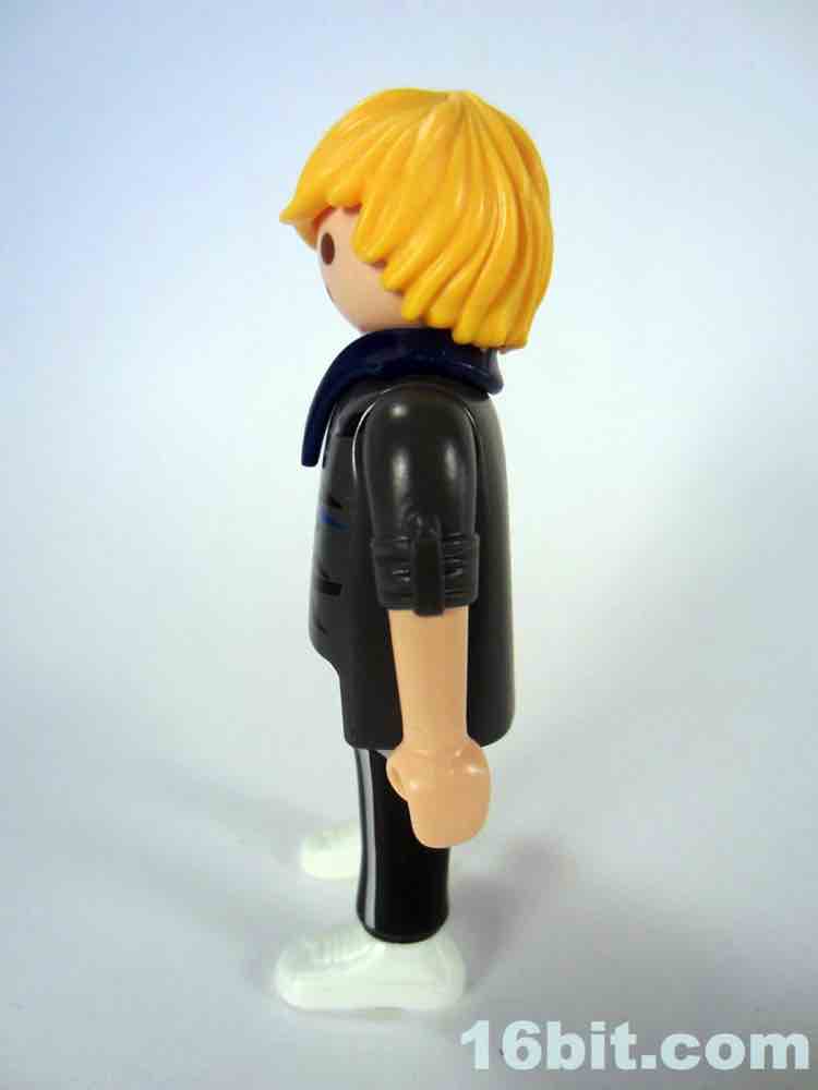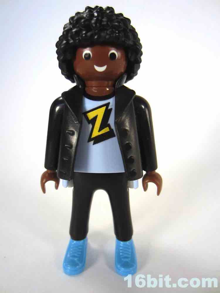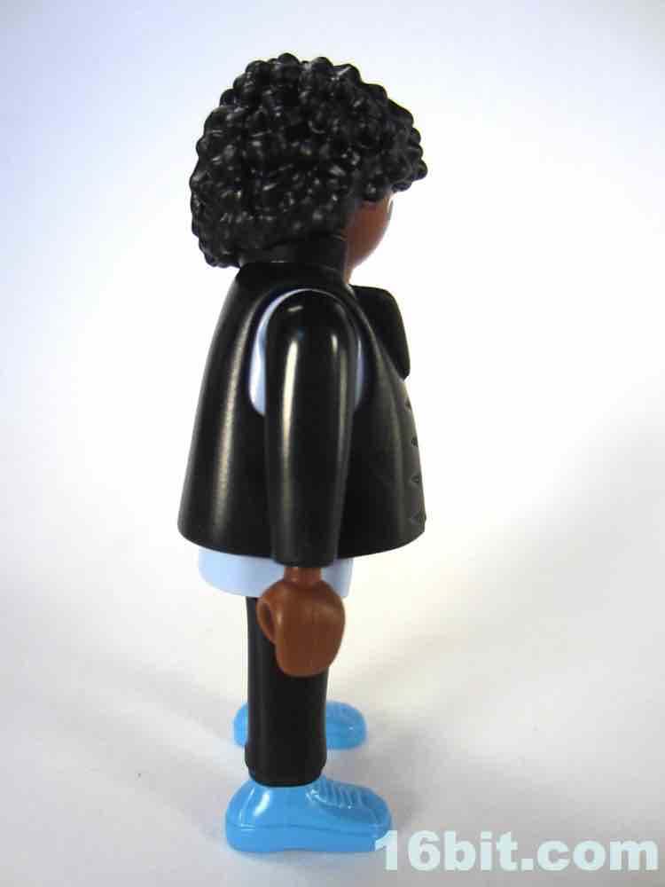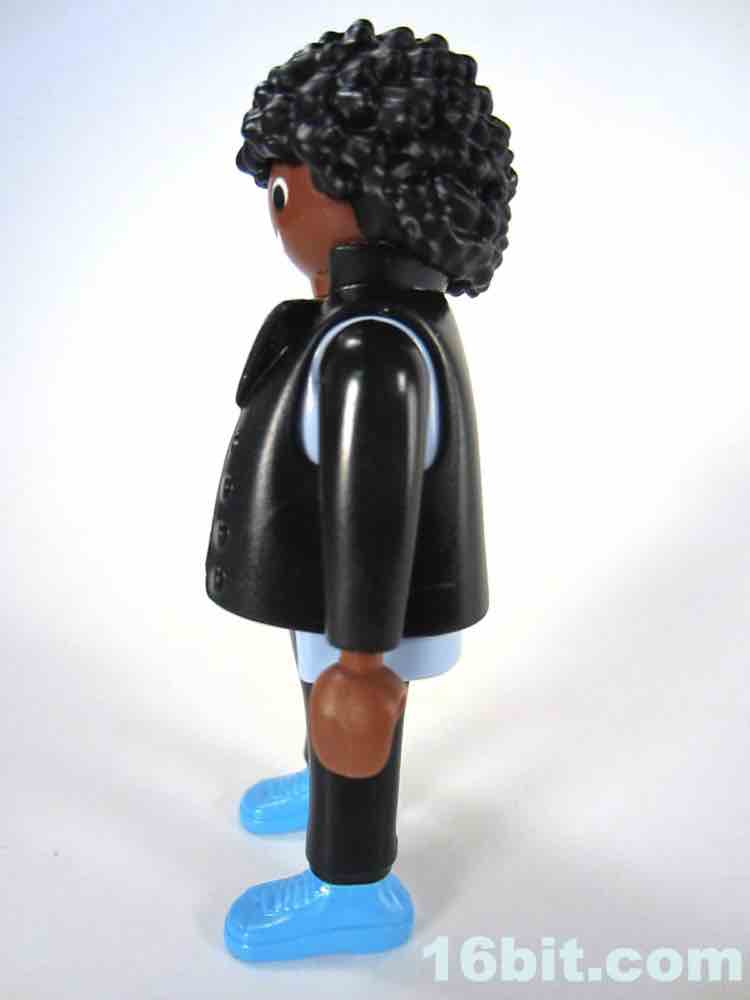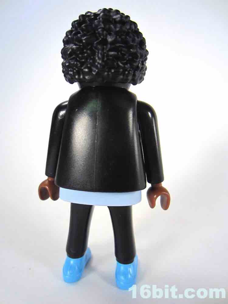As always, each figure is about 3-inches tall. A black man with frizzy hair, an awesome jacket, and a cool t-shirt stands out as being both the snazziest dresser and also possibly a little discomforting with very bright teeth and visible whites on his eyes which may recall other toys that were formerly popular in Europe but are no longer in vogue. The hair piece is really cool, and should go a long way to helping you make your own Playmobil incarnation of the MC5 or 1970s versions of The Magic Band. A guitar easily straps around his (or any other) body, and the accessories - like all Playmobil accessories - just work. A white blonde kid with long, Bieber-esque hair and a stupid shirt is joined by a colorful young white lady with a semi-loose skirt which shifts up when she sits. The body design is quite different from other lady body bucks you've (OK, I've) bought over the years, and she holds together nicely. If you squint, she could probably also make a decent Kate Pierson ca. "Party Mix" or "Wild Planet," minus the color and the shirt. It's getting there- it's a striking figure.
