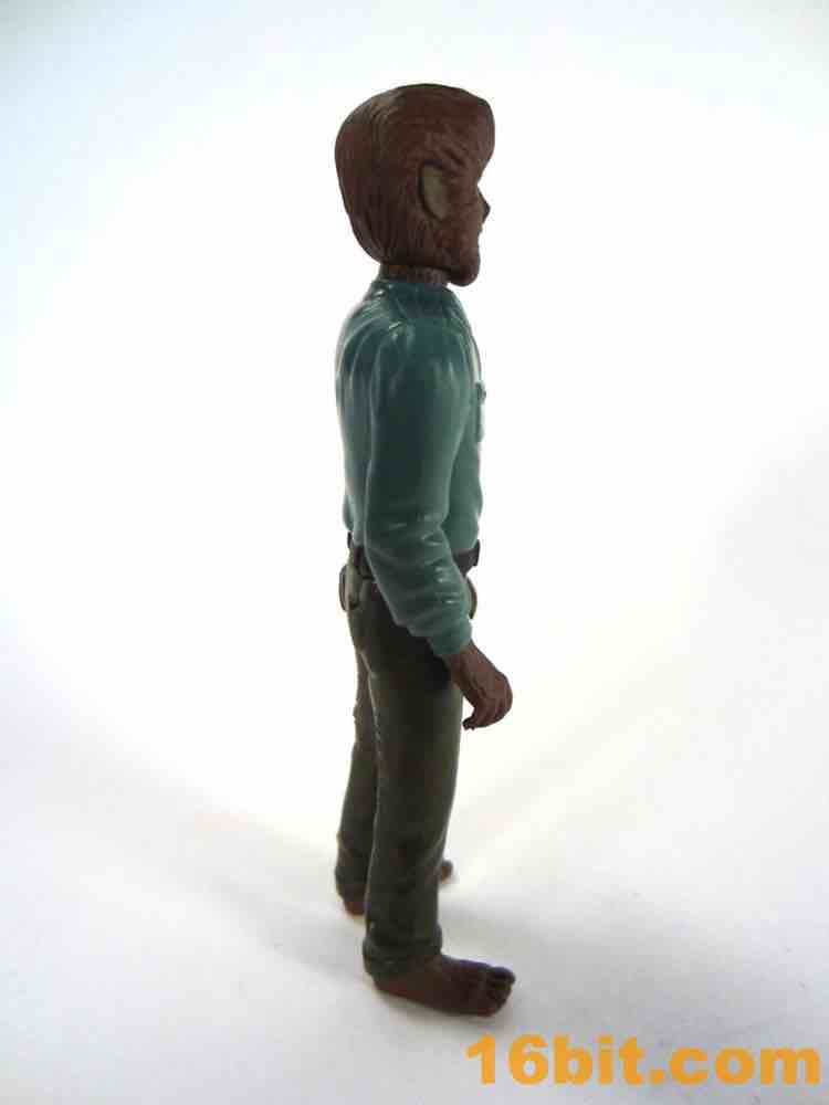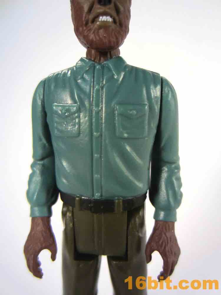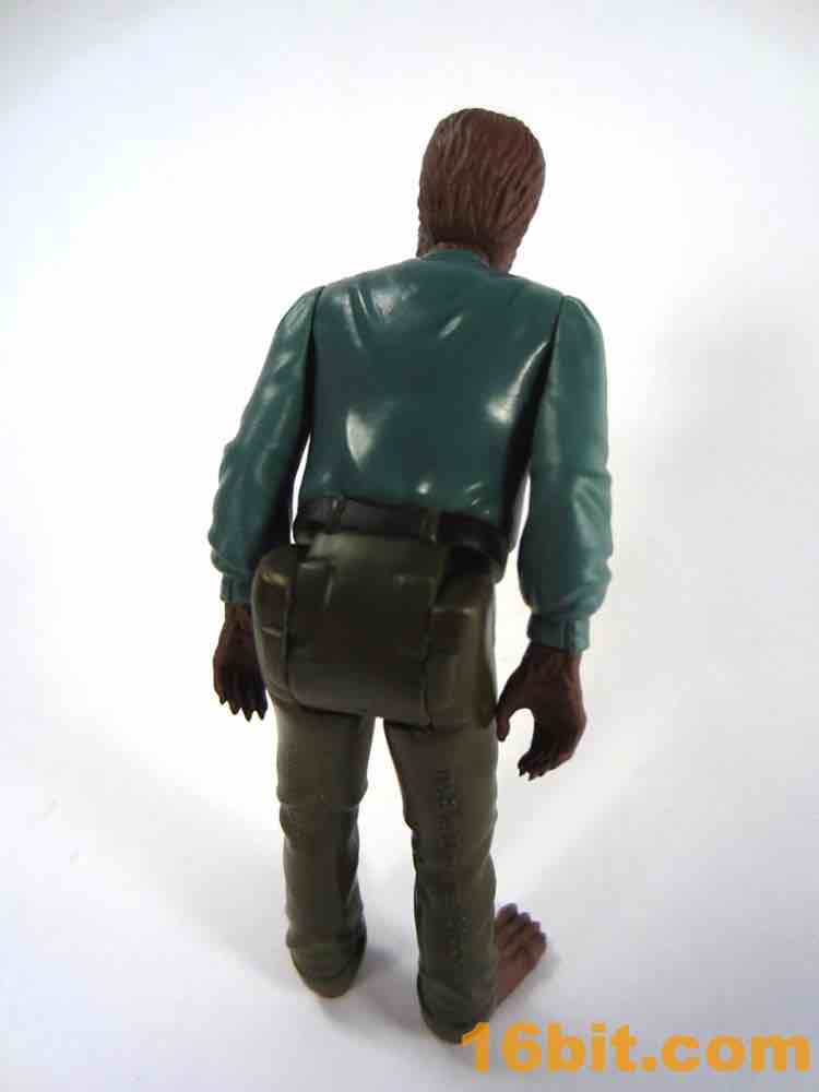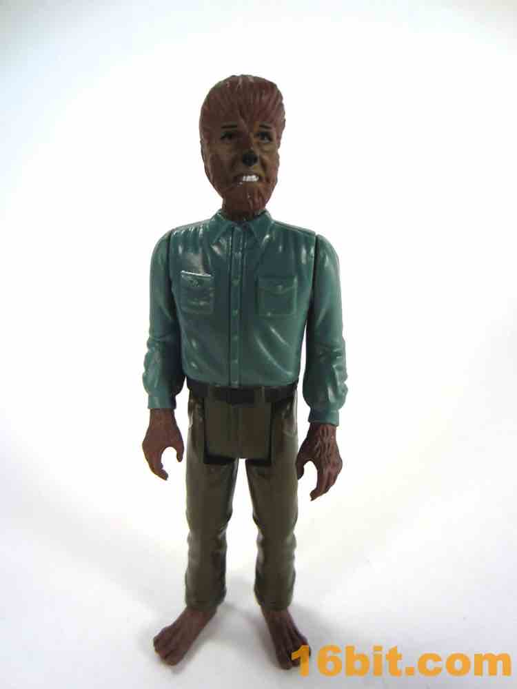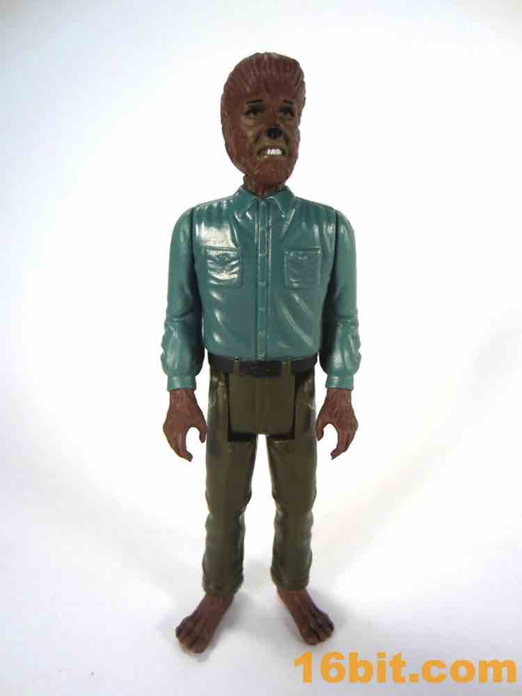One of the stranger things I've seen in my decades of toy collecting is that facts change. Questions like "What color is Han Solo's jacket?" have had numerous answers - if you asked Galoob and Kenner in the late 1990s, they said that Lucasfilm told them that Han always wears black. However, there were exceptions - which means we saw Bespin Han usually wear black, but Hoth Han's garment has been black, blue, and a purple/brown color. It seems that The Wolf Man is not immune, no doubt in part due to the fact black-and-white movies screw with perceptions. This figure has a nice 1980s feel with a glossy shirt and appropriately old-school articulation, plus white teeth and faux Kenner eyes. It's good. Get one.