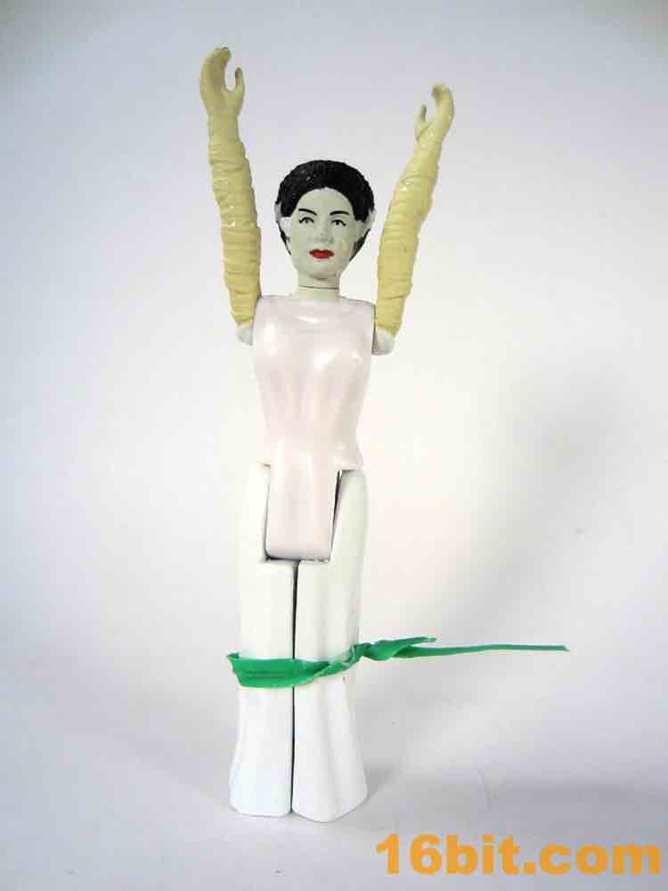 When I saw the sculpt for The Bride of Frankenstein I was quite happy with what I saw - the head was appropriately understated and exaggerated, and the arms and torso reminded me a lot of the original 1978 Princess Leia figure. However, I noticed that in the packaging the legs were bent kind of funny. When I tried to fix them, the hip joint got loose and wobbly - oddly, the same loose leg problem was on Bif Bang Pow!'s Kanamit, who also had robe legs. Coincidence? I wonder!