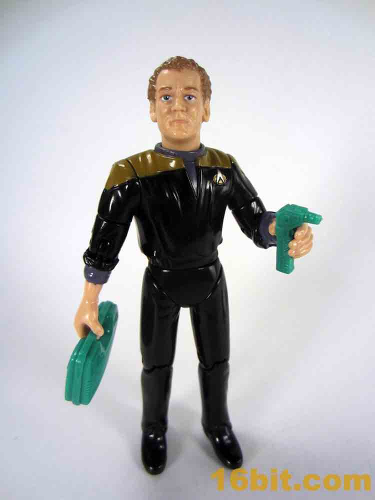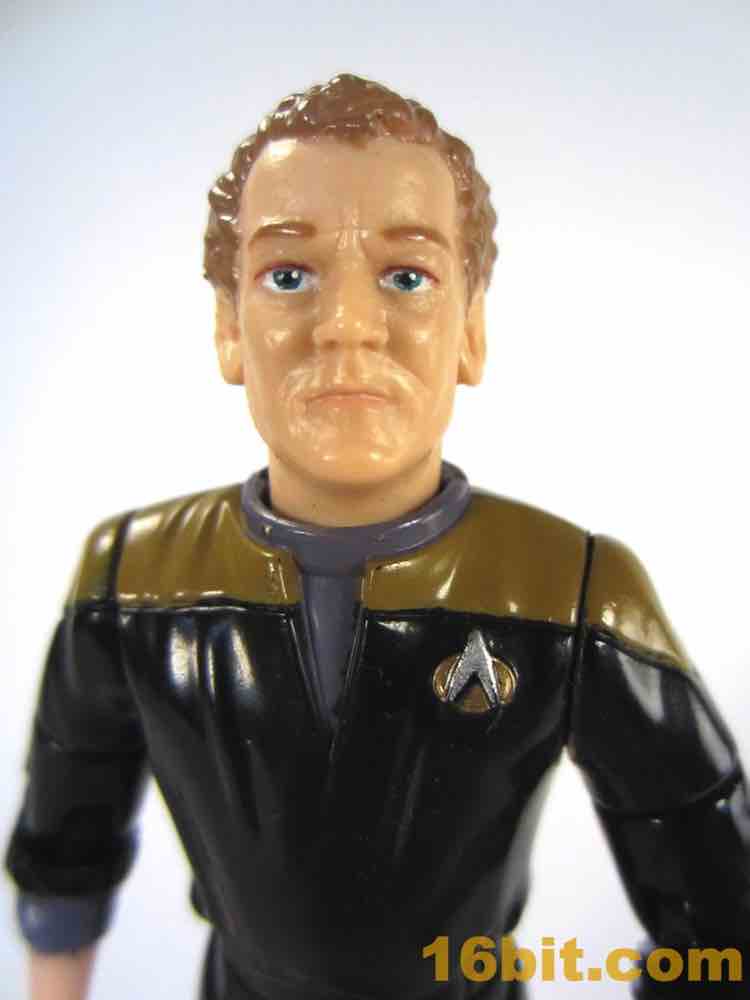 At 4 3/4-inches tall, O'Brien is spared the indignity of some of the wacky poses - but he has huge, huge hands. Huge. These are useful for holding his accessories, which were the standard one-color affairs of his day. Let's face it, very rarely are you buying these figures for their gear - the figure itself was quite nice, though. The face sculpt looked more than a little bit like Colm Meaney, and while the hair could stand to be darker it otherwise did a good job of replicating the character. THe face has a few sculpted wrinkles, subtle paint on his lips, and multiple paint applications for his eyes that would be good by modern standards, let alone standards of 1994. The head deco is actually quite good when compared to other similar smaller figures on the market today, which is both astounding and depressing all at once.