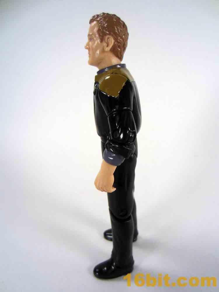 The mostly-black uniform matches his look in the first few seasons nicely, with the rounded, TNG-style commbadge. His rank pip is accurate, and I assume the rest is because it's hard to see details in an all-black outfit on the space station. It's darker than the Enterprise, after all. The figure is relatively free from excess wrinkles - today, I'd argue most toy companies overdo it a bit. The area around the collar with the "gold" seems to be the most textured with the figure coming in quite smooth and glossy. This would change a bit in subsequent series.