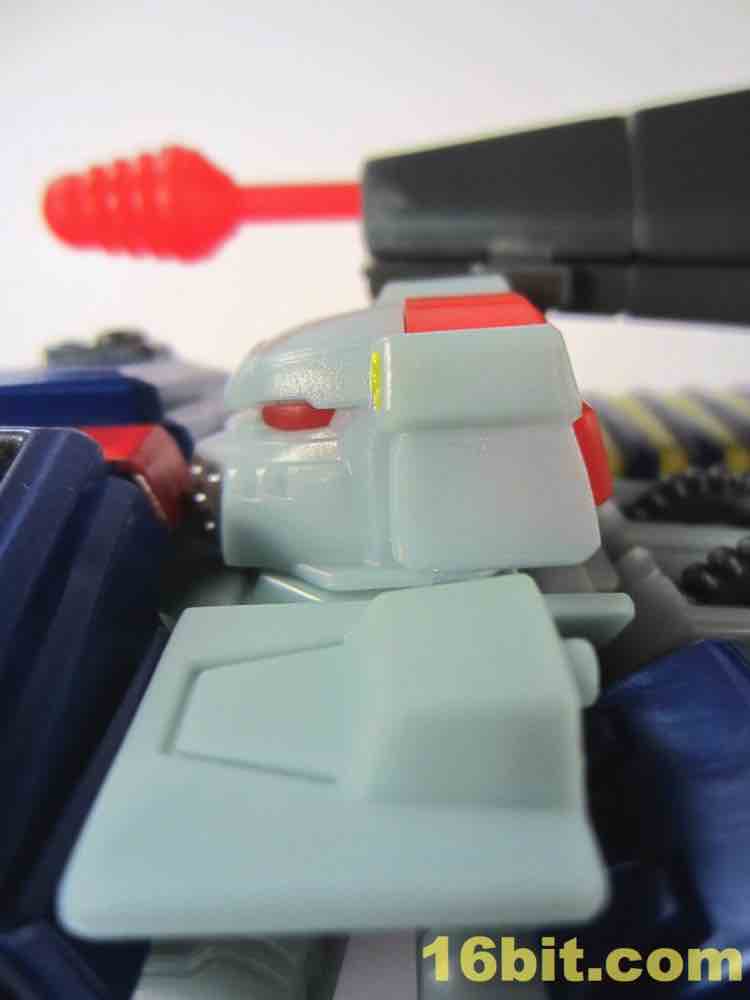 The shoulder cannon clips on to a bar on his back, or can be held in his claws if you want. You don't want. The red rocket launches when you pull back on the black tip of the launcher, but it barely sputters out a few inches. Tankor does have a swell red light-up eye port, much like the toys of the late 1990s and early 2000s (and even more recently) did. I appreciate that it's an incredibly bright color, so even if you don't have much light it still gives the figure a little life to him. Not like the dead-eyed eyeports where they painted over the back of the head so it's blacked out.