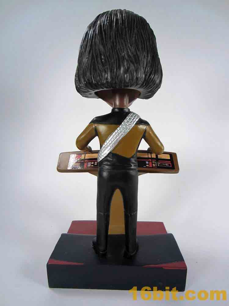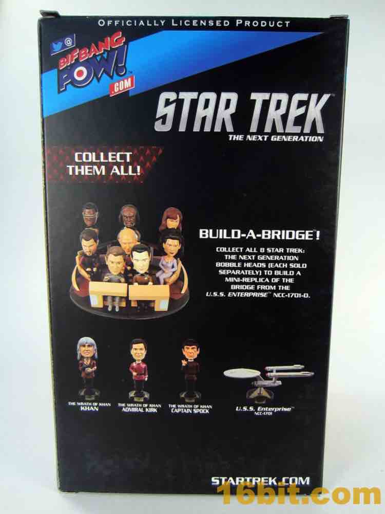 Hey, this is one of mine! I did some consulting on the Lieutenant Worf bobble head, which is one of the reasons you've got what essentially amounts to a season 3/4 crew with a build-a-bridge diorama. If you buy one, you get a solid resin bobble head. If you buy all eight, you can make a little diorama thing.