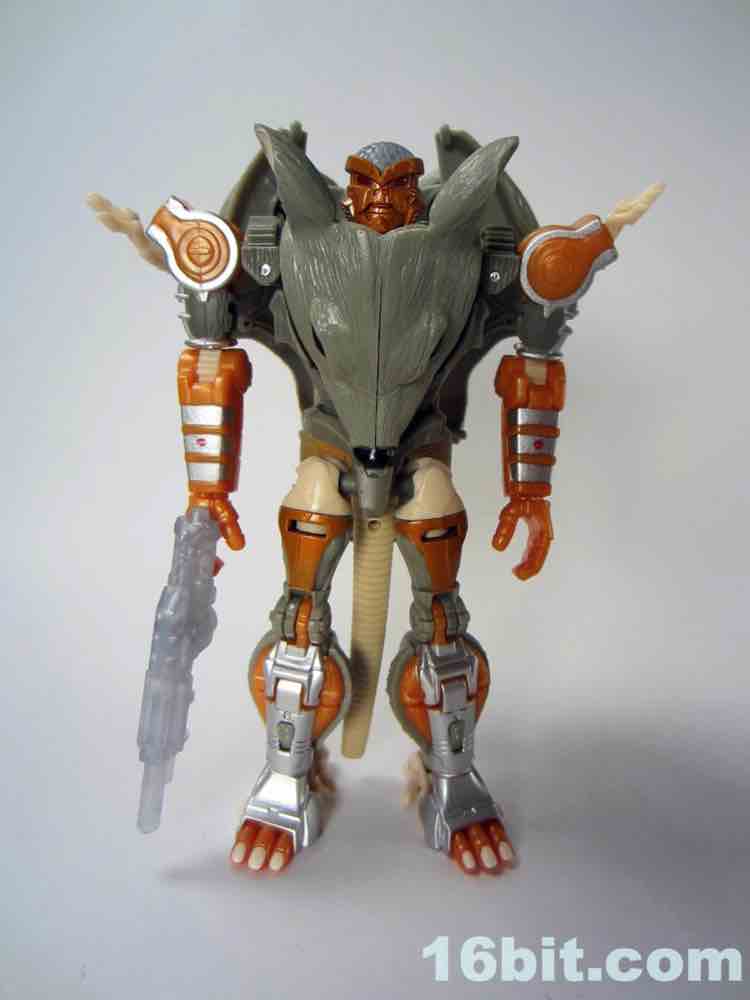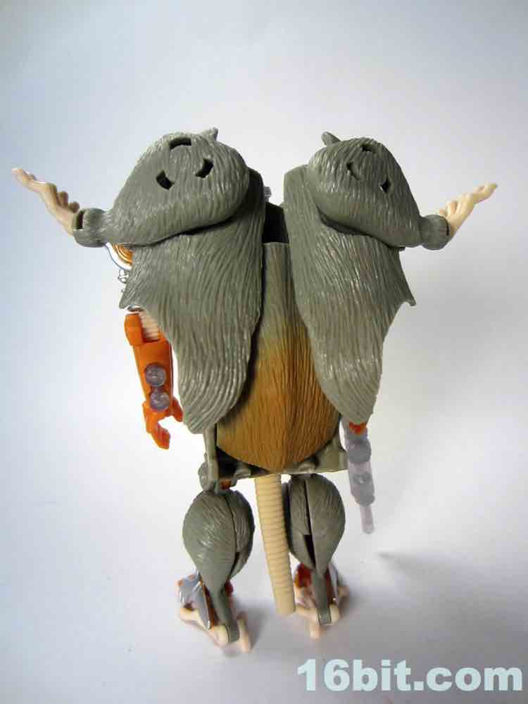 Detailing is pretty good, but the grey plastic has a strange, light, airy, and waxy feel that feels like a lesser quality. The parts are somewhat difficult to massage in place and this is a situation where a more rubbery plastic might have been better, just for my sake. The form fit of the rat limbs on his back may cause them to pop out during transformation, and my first one had ill-assembled pins in the robot legs so he couldn't even transform into rat mode. This isn't something you can tell until you open it, but you can see the clear brain dome, the nifty face, and the cool silver detailing before you make the purchase here.