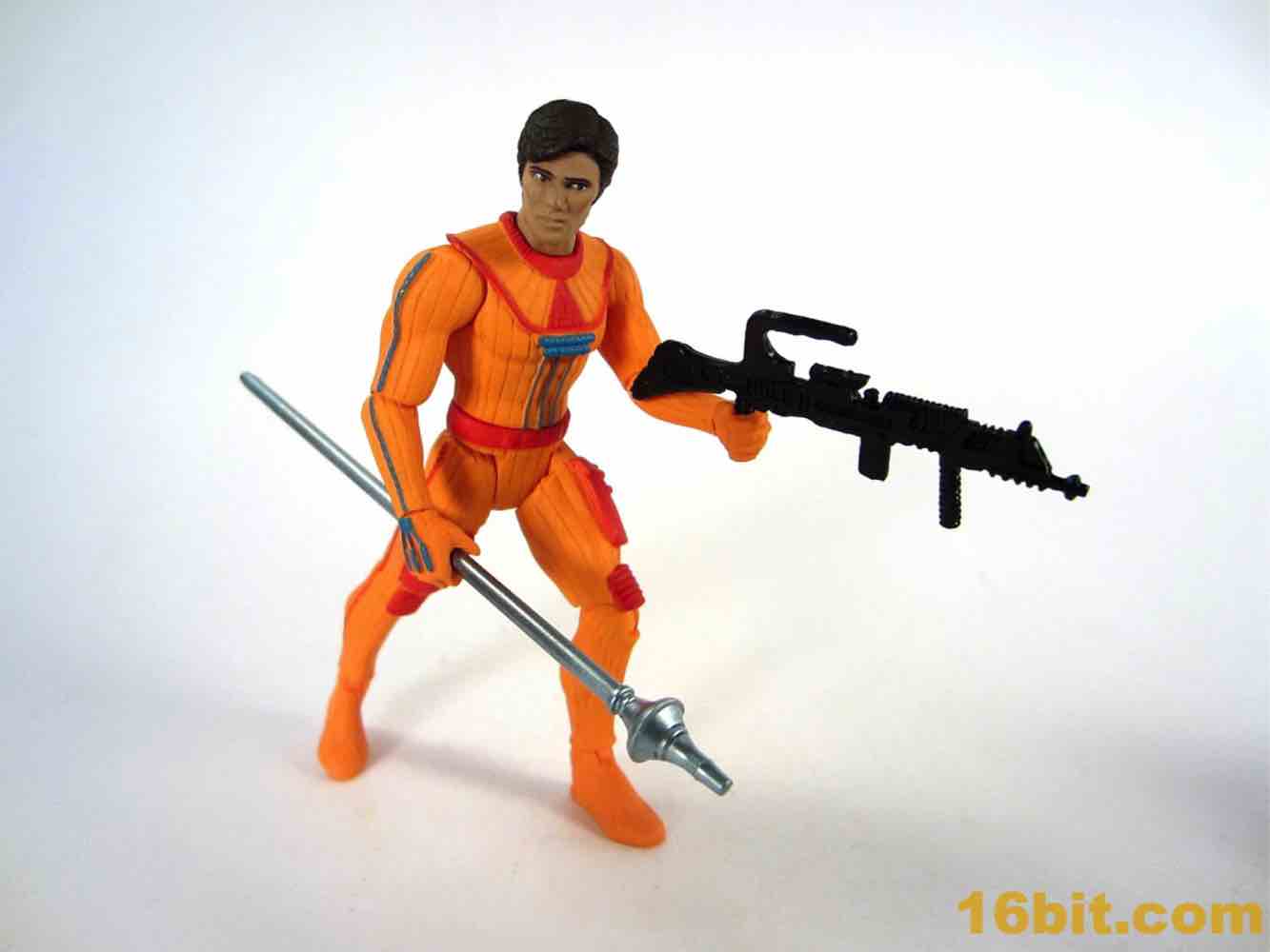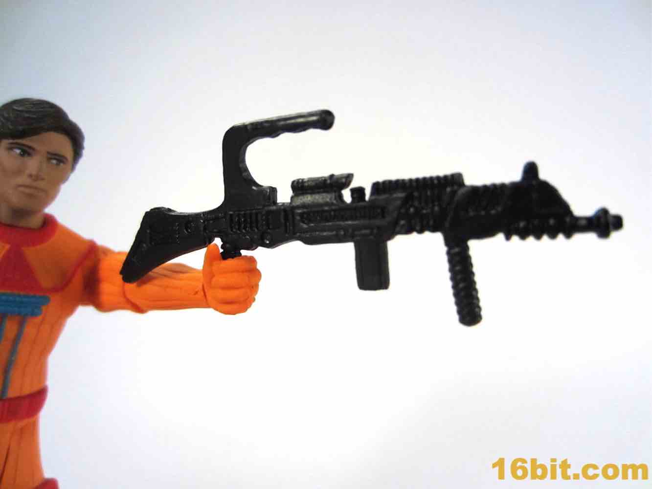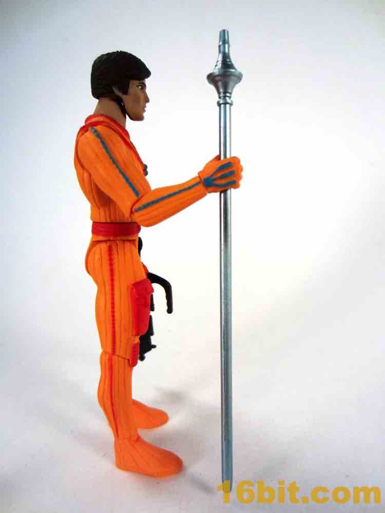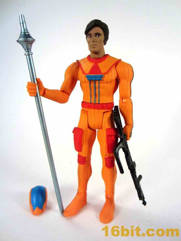 Four Horsemen Power Lords Adam Power Action FigureHis weapons fit in his hands nicely. The rifle is unpainted and black, while the staff is a bluish silver color and painted. It's delightfully goofy and retro, feeling like it could have actually appeared in any decent sci-fi movie of that era. It feels like an unused Star Wars costume design, so it fits nicely with sci-fi toys of that era. The weapons are decent, the sculpting is good, and given the price and edition size this is actually quite a good figure for the money.