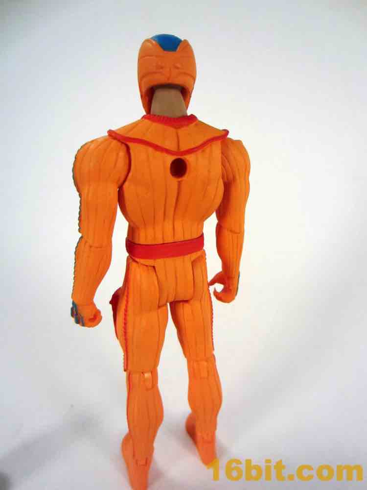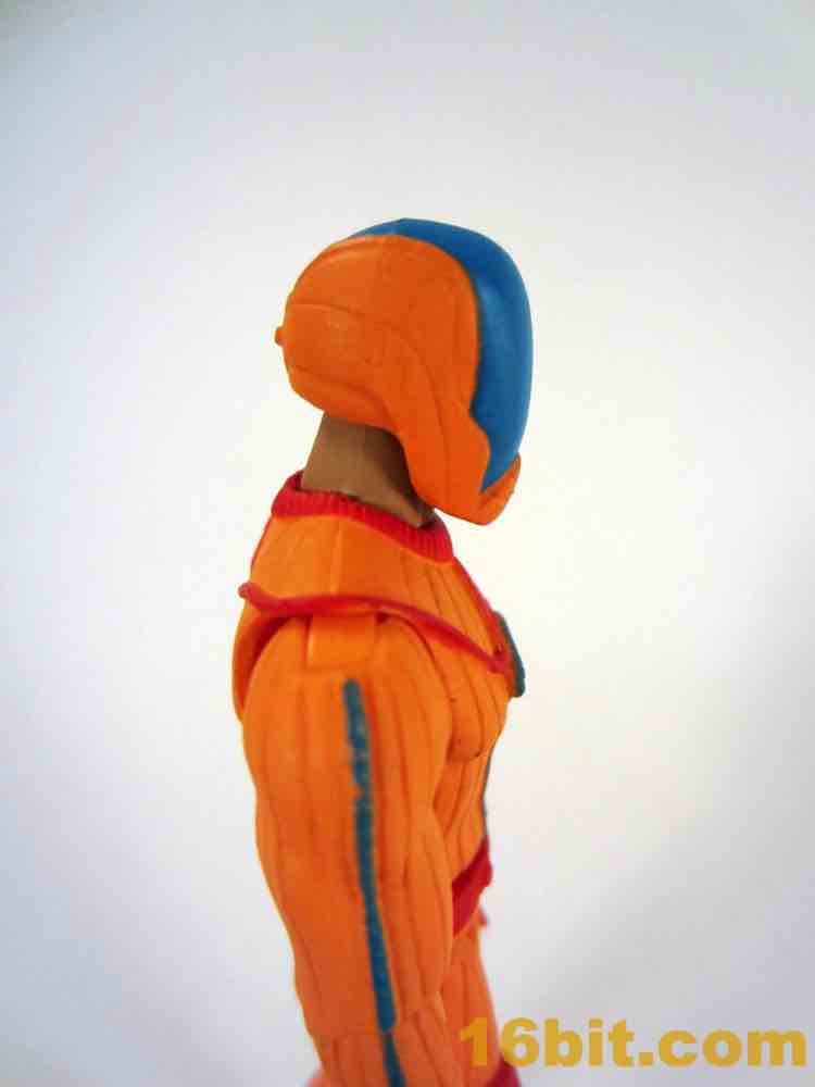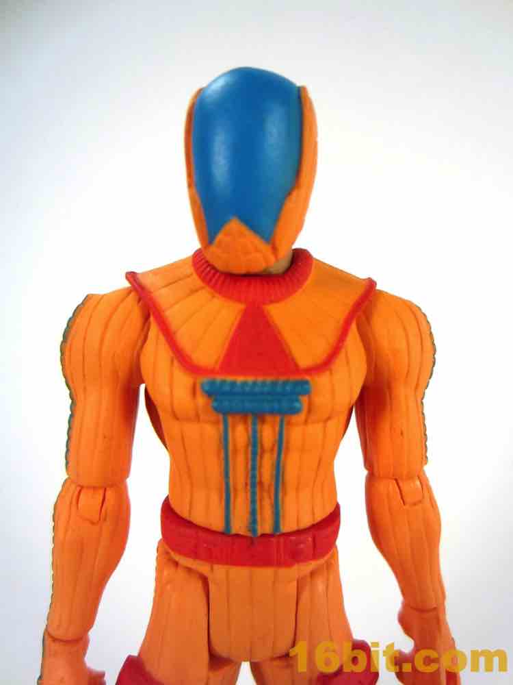 It is important to say that this is, at its heart, a well-engineered figure. It's similar to the many (many) Power Soldiers that have taxed my spare income and basically only adds paint and a new head to the mix. As you can see, my sample got odd eyes - shifty, perhaps trying to avoid eye contact due to having a problem with flatulence. Other than that, it's pretty nice - the bright orange paint is gorgeous, the red piping is nice, and the blue breaks up the torso nicely. The alternate helmet is OK - the exposed fleshy neck is a little strange, but it still works.