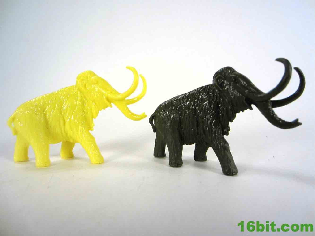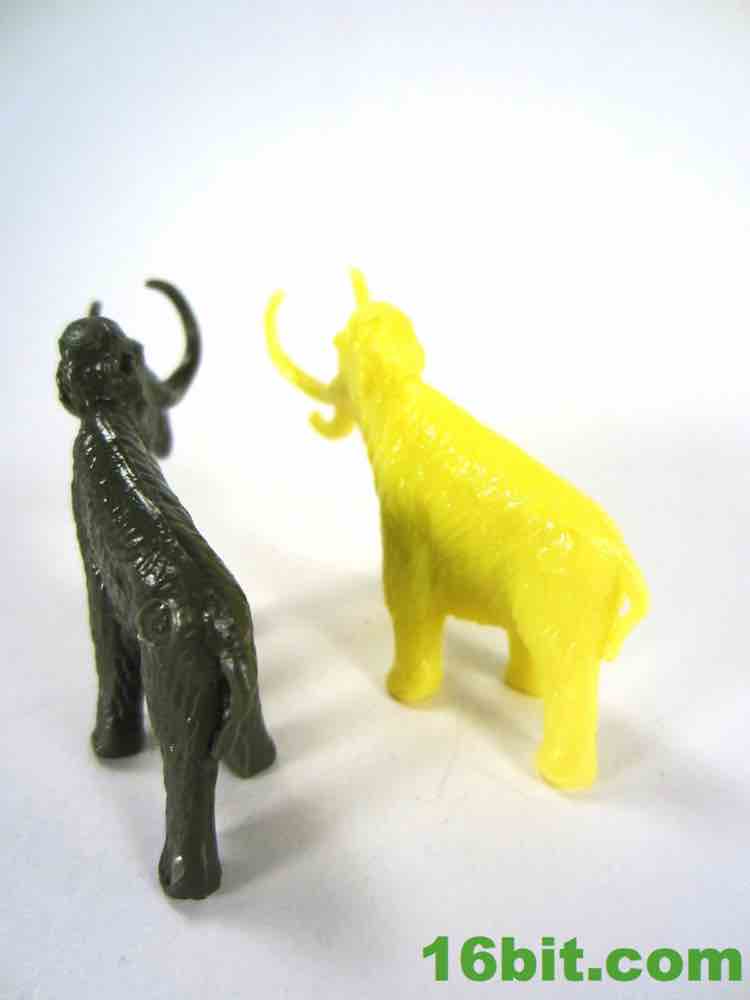 I'm a fan of mammoth toys. I'll pick up a lot of them given the chance, within reason. I'm less of a fan of models, and this woolly mammoth is pretty sharp. You'll notice it has smaller ears, unlike the believed appearance of the American version known as the Columbian Mammoth. The cold climate means smaller ears, so there's less frostbite, and nobody wants frostbite. Well, maybe the dire wolves. He has a small tail, a lot of sculpted fur, and is also unnaturally skinny for such a robust creature. The head has two pointy tusks and the trunk, giving it some much-needed depth. If you look at the body from most angles, it just doesn't look healthy. It's a decent figure from the side, although like most of the set the proportions aren't quite right. Such is the charm - it's a fun, lively little guy.