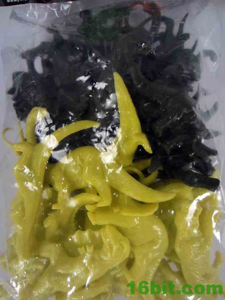 This is a good set - the Galaxy Laser Team set gets you 48 figures and 2 ships, but the Green and Yellow Prehistoric Dinosaurs Figure Set has only 48 figures. Like the Laser Team, there are a few differences from the original - but what I had as a kid in the 1980s were knock-offs, so these don't quite match and I don't quite have perfect reference.