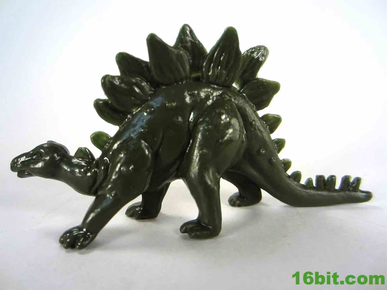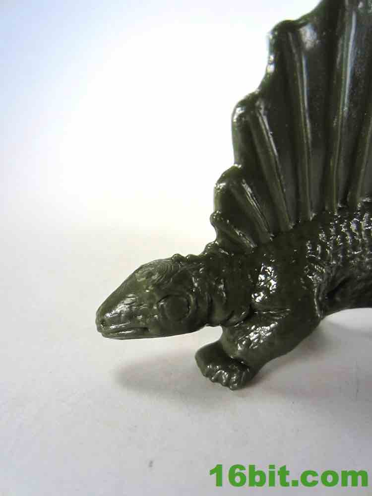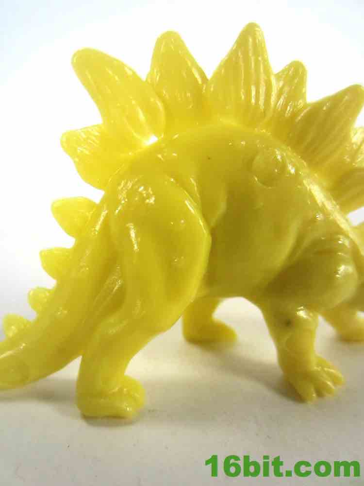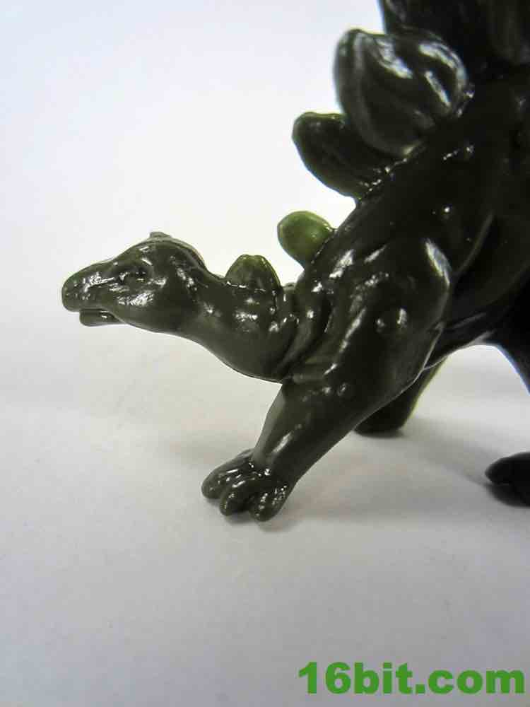 The stegosaurus looks both better and worse than I seem to remember it. The detail is a lot sharper, each plate has a few grooves and the head and neck are nicely sculpted. The expression is a little more optimistic, and the longer neck radically alters his personality. It looks more doddering, older, and a little more wobbly than the tanklike ankylosaurus in this set. The less-sturdy look and feel is carried into its thin build, with a small hole appearing under the plates on his back in two spots. The traditional spiked tail is here, as are the four legs. There's not a lot of variety here other than more recent stegosaurus interpretations seem to put more emphasis on a beak while this one has more of a grin on his maw, but it's still cute and pretty good. You can't really knock this one.
