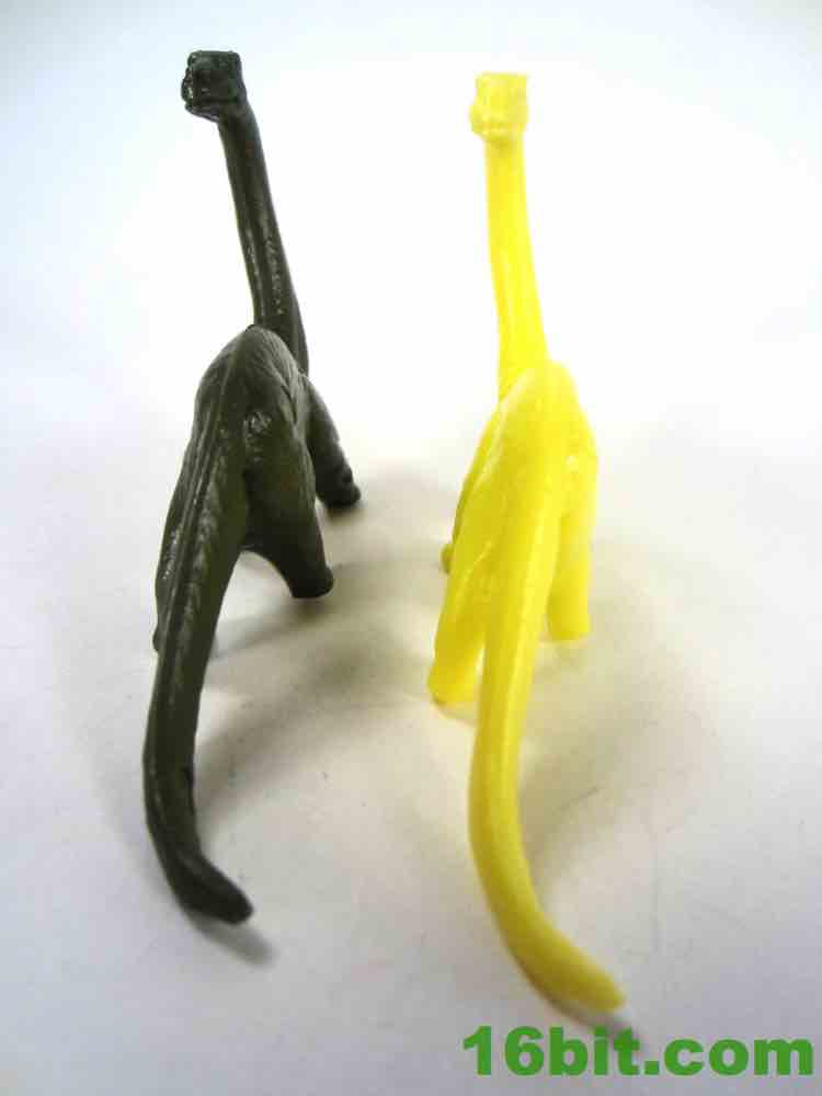 I was a big fan of the Ankylosaurus because it looked like an armadillo. How can you not love little armored turtley dudes? This one has a much bigger tail club than I remember from my old ones, but the stumpy little guy has no neck to speak of. This helps keep it solid - I've heard collectors make reference to these being "indestructible" but I dare not tempt fate. I'm pretty sure that they could survive any sandbox, toy box, or little brother or sister.