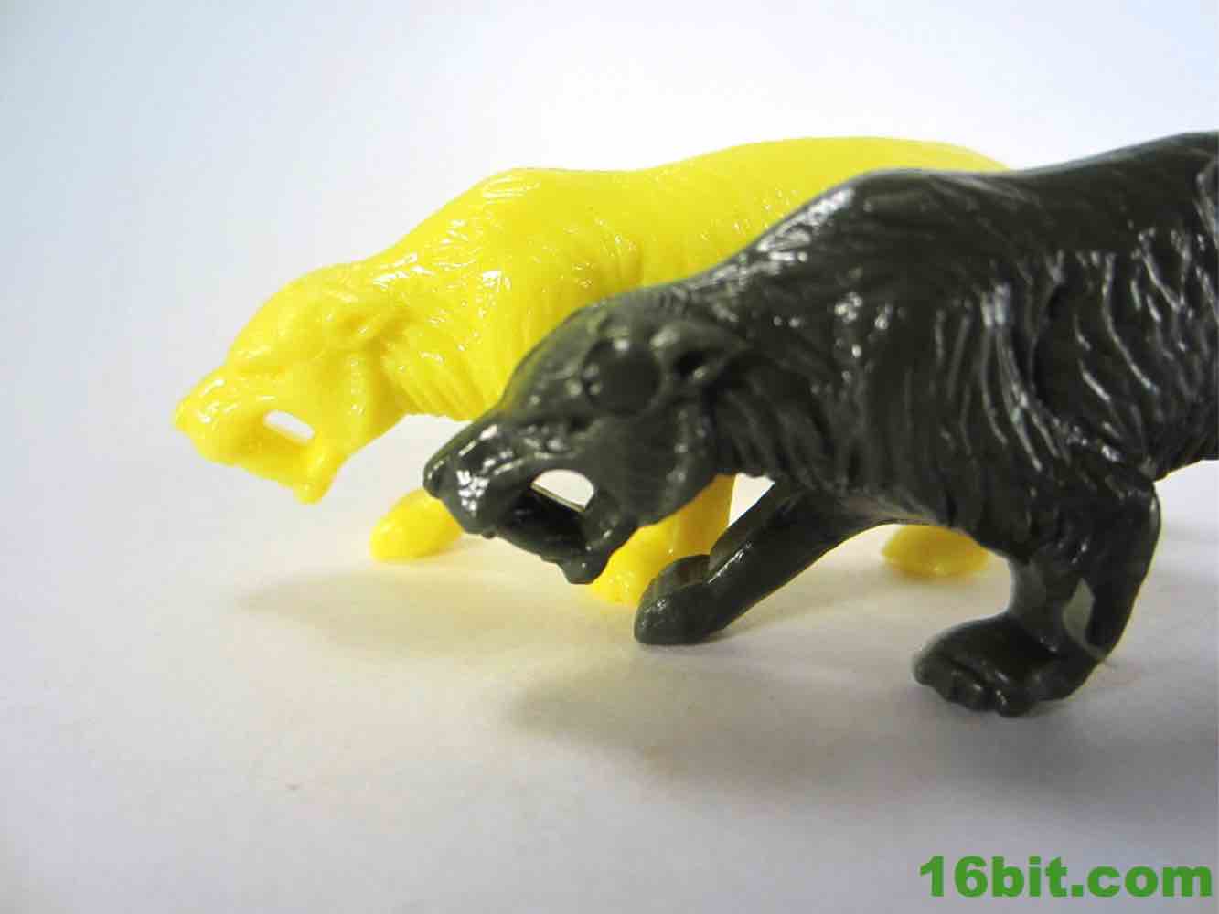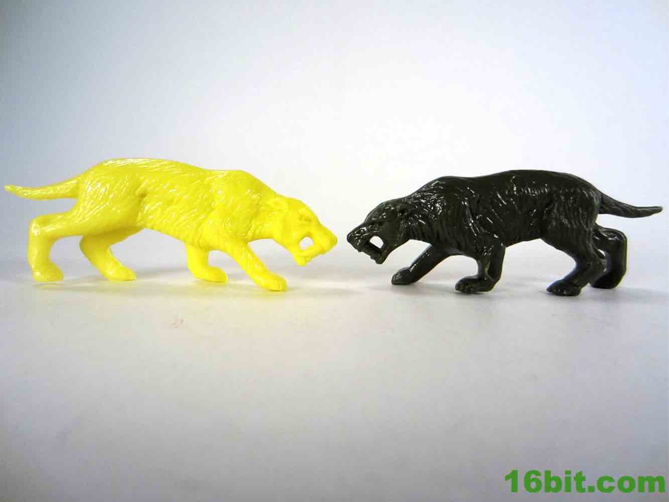 The Smilodon (or another saber-tooth tiger creature) is a mainstay in old shows involving cavemen or time travel, and it looks more or less like you'd expect - there haven't been a lot of revelations about its build. It's a big cat thing, it has sharp teeth, and that lends itself to good toys. It's not a radical departure from most designs, but it feels a little skinnier with a slightly longer tail. The detail is pretty solid, but it's not like any sample I've seen of the originals was particularly amazing. It's a good design in that it's immediately recognizable and has, yet again, a solid silhouette. You know what this is, it looks good. And it's 2 1/2-inches long.