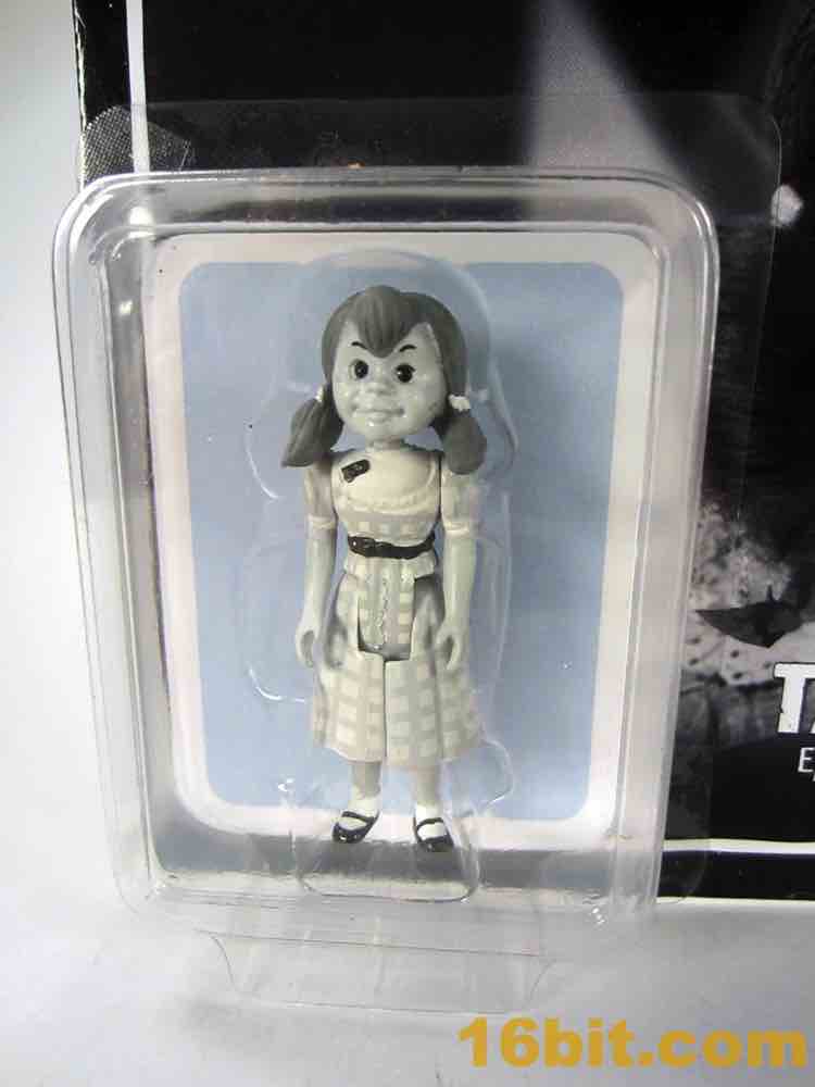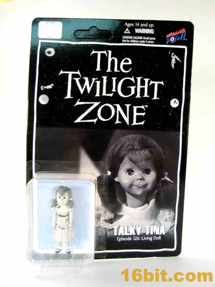 The action figure here - which I did a wee bit of consulting on - was inspired by that episode "Living Doll." She had to be a smaller figure, but not too small - the real-life prop was based on a Chatty Cathy doll (ask your parents) which was about 20-inches tall. If you were to make a 3 3/4-inch scale version of the doll, it would be about 1.1-inches tall - miserably small. This action figure is about 2 1/3-inches tall, which means she's more substantial and surprisingly stable. I can't tell you how pleased I am with how she turned out, from the unique cut in her legs for the dress to the fact that she can actually stand for long periods of time on such tiny legs. I've had a lot of problems with skinny-legged figures falling over, but this one has hung out on my desk for months and stays standing unless I accidentally bump into her. I can't complain.