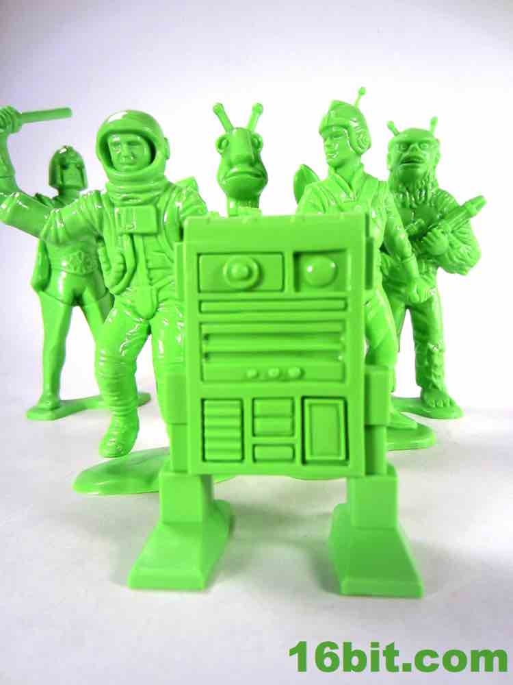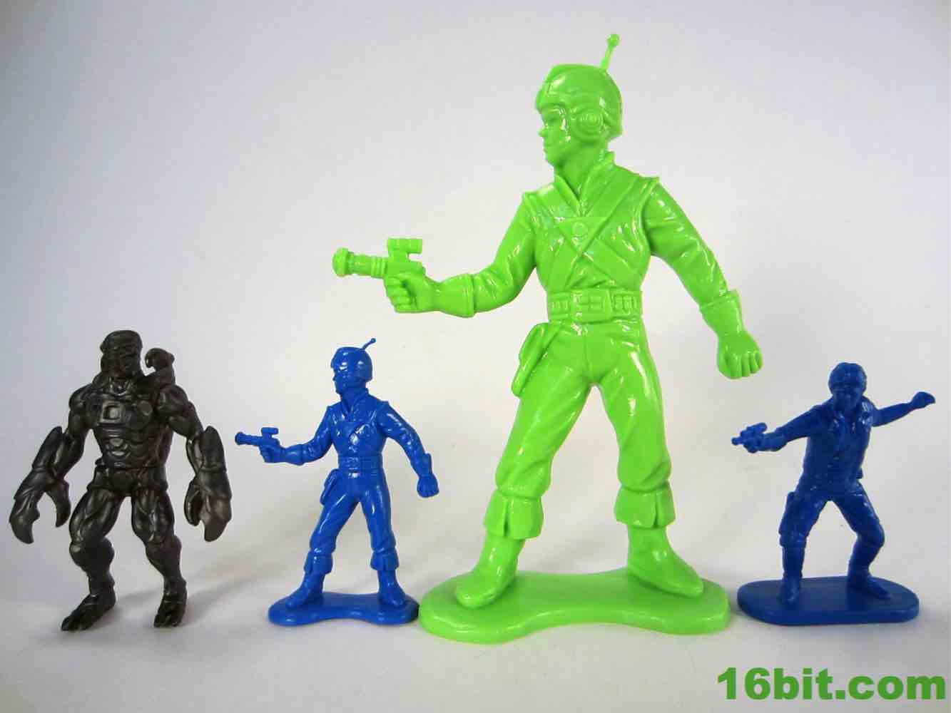 In terms of raw value, the Green Galaxy Laser Team Star Patrol Jumbo Figure Set is not the cheap thrill of the smaller figures. The people behind Tim Mee recently relocated the tooling for the larger figures, hauled them somewhere to crank out some new figures, and made them - the larger figures were previously seen in Mexico and it seems the facts of their vintage-era 1970s and/or 1980s releases are a little murky. The reissue is here now, though, and they're slightly different than the currently available smaller ones thanks to changes made to the tooling over the years.