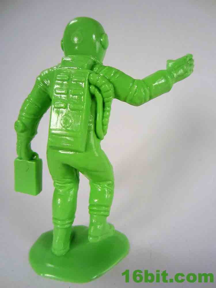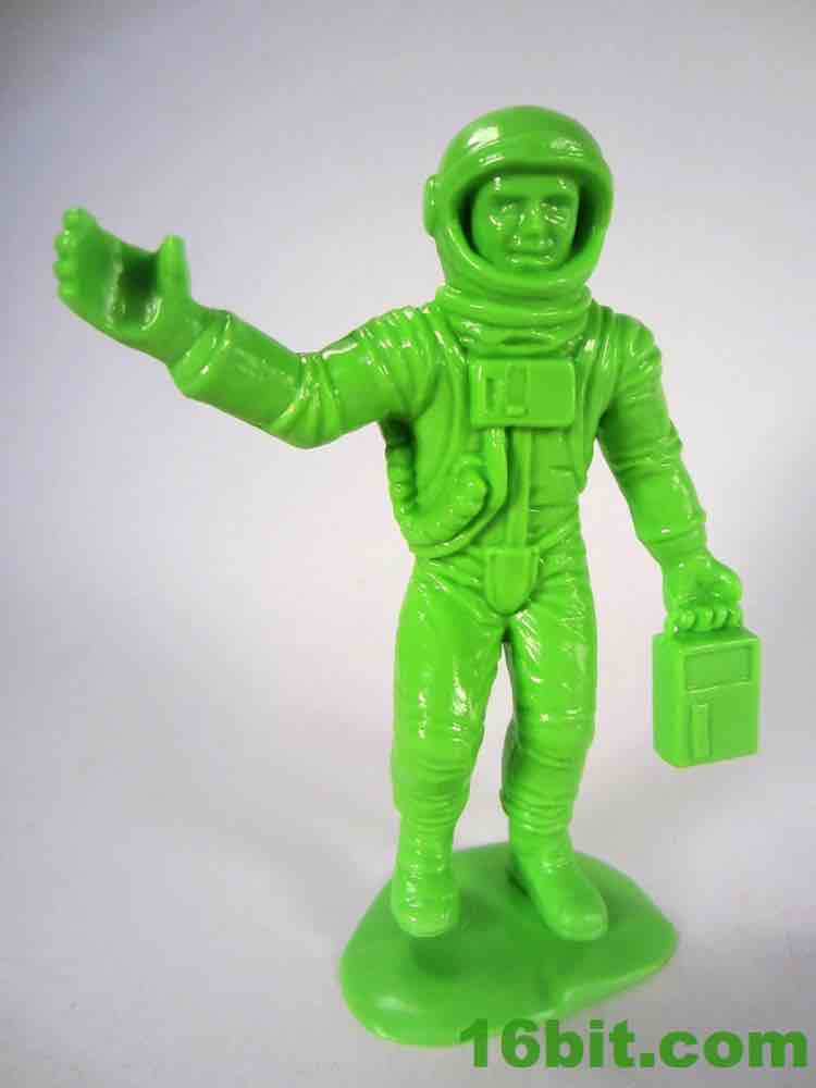 The Astronaut is a curious choice - his companion spaceman and space secretary weren't included in the upsized set - and he feels like part of an incomplete pairing. His open right hand is sculpted to grip something, but what? No flag, no landing strut, and no other figure seems posed to work with him so it's just sort of weird, doubly so at the larger 4-inch size. One foot is off the ground, and the other is firmly planted on what I have to assume was the moon. His right hand is holding some sort of box - a tricorder, an old cassette player, who knows. The important thing is that the box is there, and his space suit is nice and wrinkled. They did a nice job here, but as with the others the human head is a little soft on detail. As far as I can tell, it's just upsized (or the 2-up) from the original smaller figure.