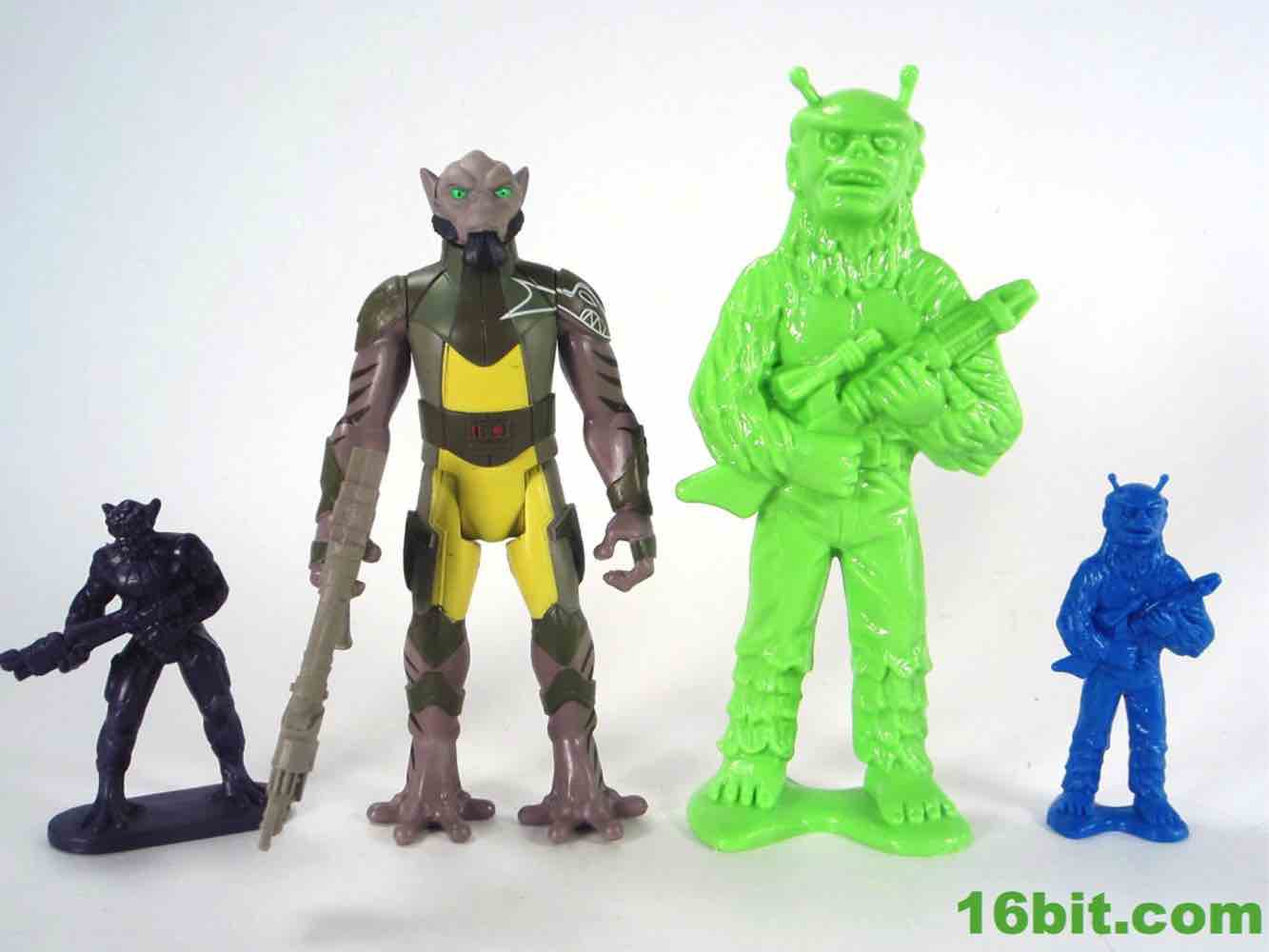 First up is a faux Chewbacca, which looks a lot like Zeb from Star Wars Rebels. The 4 9/10-inch figure is mighty and massive, giving you a clean look at his capri pants (with pockets!), entenna, bald spot, and nifty ray gun which just happens to be based on an old ray gun Tim Mee sold at full size for kids. The sculpting seems to be pretty much the same as the smaller ones, minus the size difference.