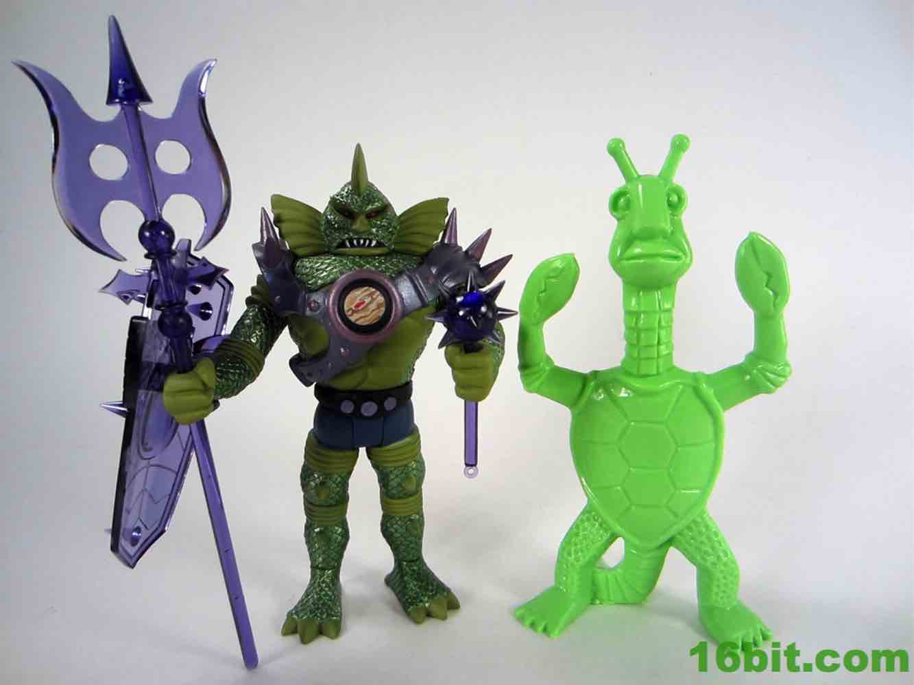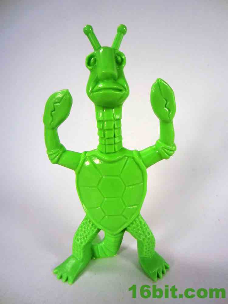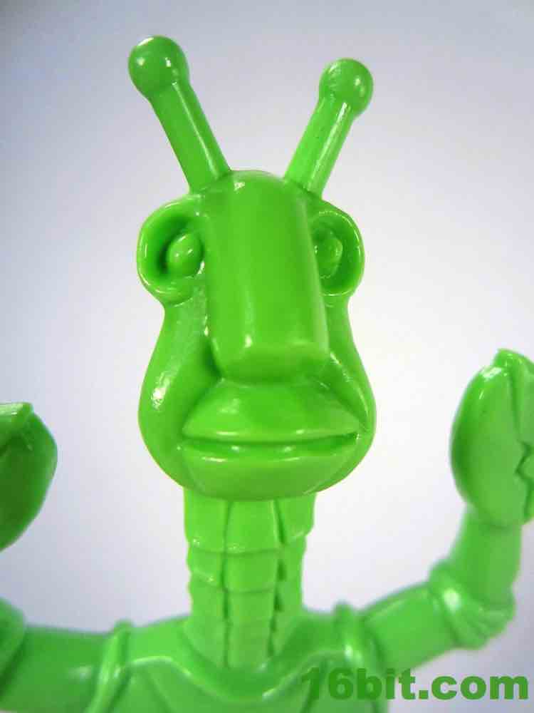More big changes (and big detail) can be seem on the galactic lobster turtle. The big thing here - another holdover from an earlier version of the mini mold - is the shell. Here, it's a solid, convex feature with a different pattern sculpted on his chest. Recent smaller releases are concave, spoon-like structures giving the figure a much thinner - almost ridiculously thinner - build. I can only assume it, like the robot, were changed to cut down on the cost of raw materials or to speed up the production process. This thicker version looks really great, and is a good reason to buy the set. It's just so gosh darned weird.