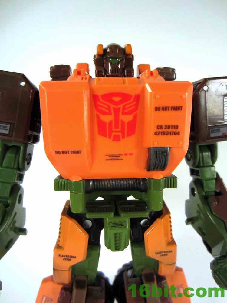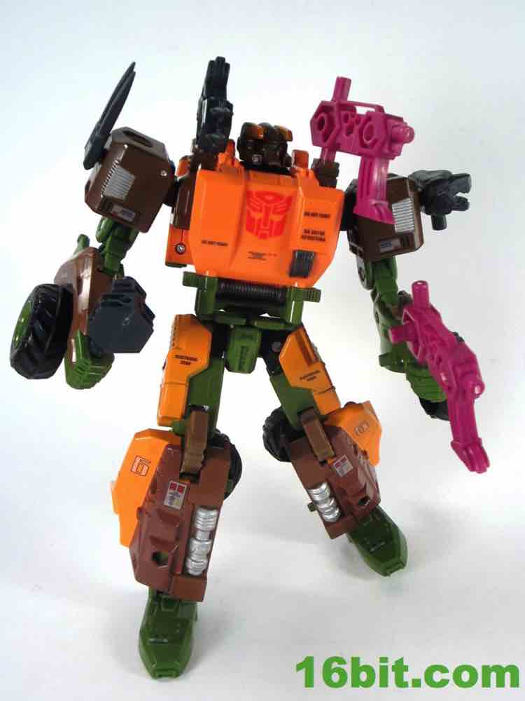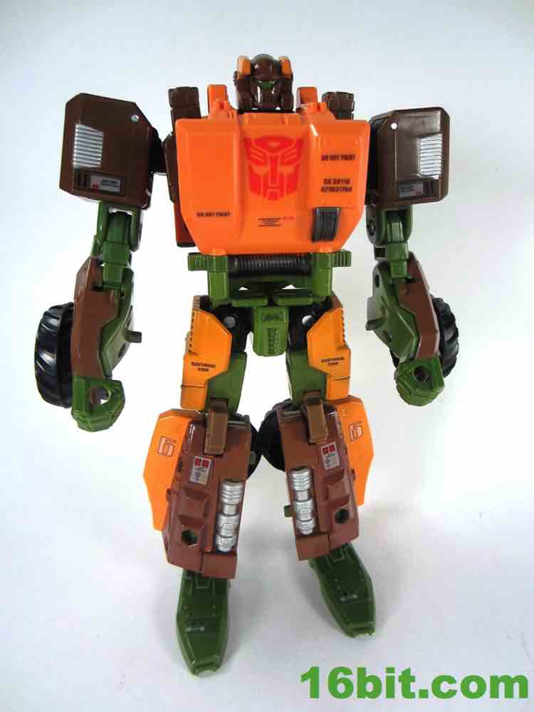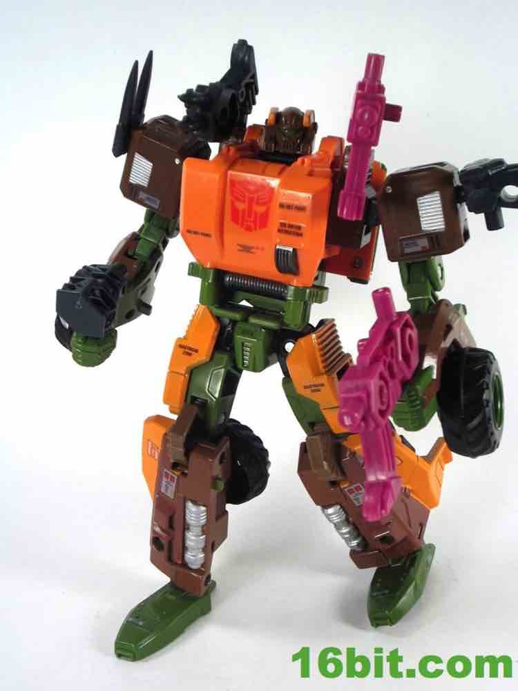 Along with Whirl, Roadbuster is an oddball. The Generations line seems to be gleefully anarchistic in its treatment of new versions of classic toys, but generally they all fit a certain pattern. Whirl and Roadbuster are based on non-Takara toys, and as such their updates tend to stick out like sore thumbs with label sheets and very different looks and feels. They're a little simpler and their stickers don't fit right. Clearly, someone at Hasbro hates you, and it's the sticker guy.