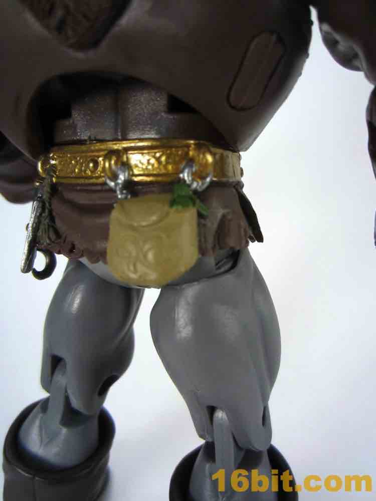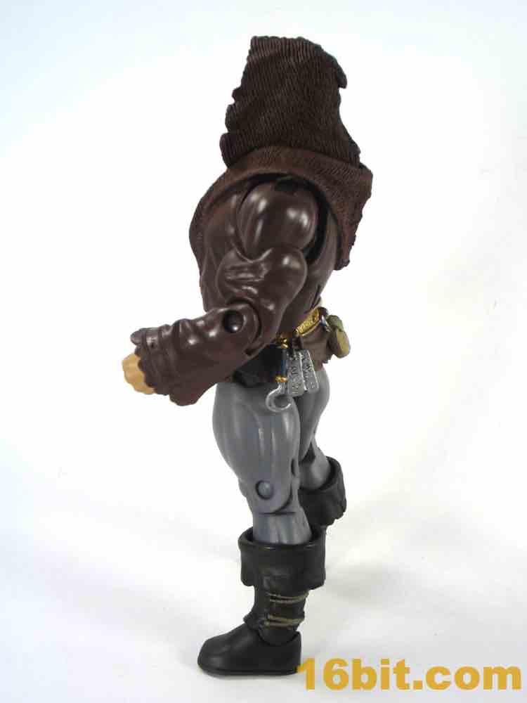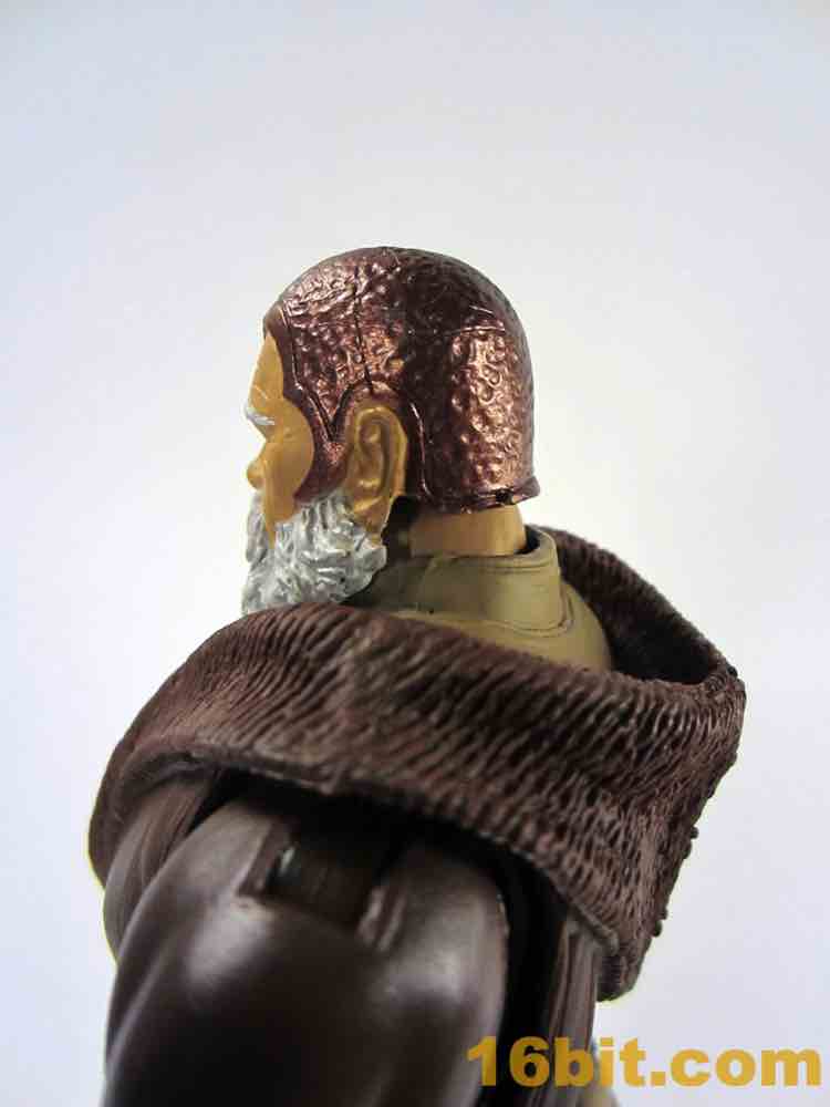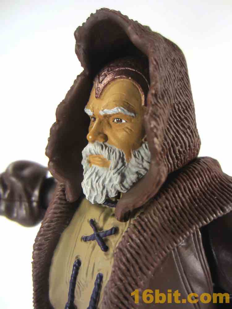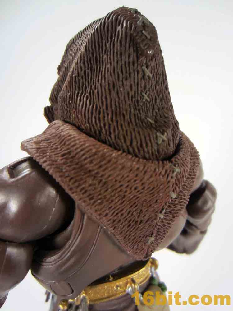 Speaking of out of place, the texture on the clothing is ridiculously good, as opposed to being a fairly smooth action figure like the bulk of the line. The level of fabric detail is distractingly impressive - it doesn't fit with the rest of the figures, but it does show just how amazing these figures could be if they tried to do them again down the road. The hood fits amazingly well, but it will fall out if you flop the figure around. His face is similarly impressive, with a copper cap under his hood that glistens under the lights. This, folks, is an impressive action figure.