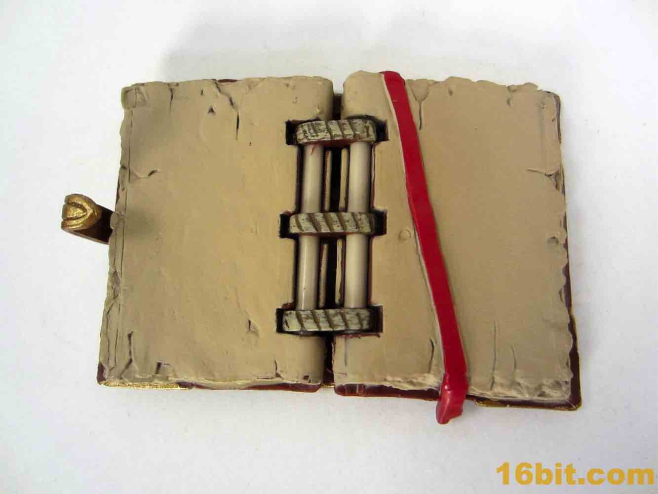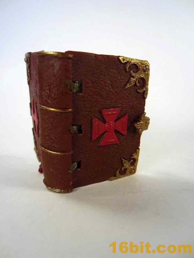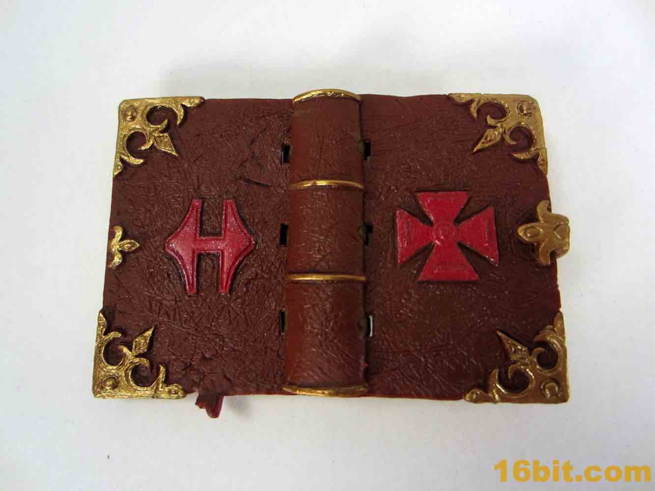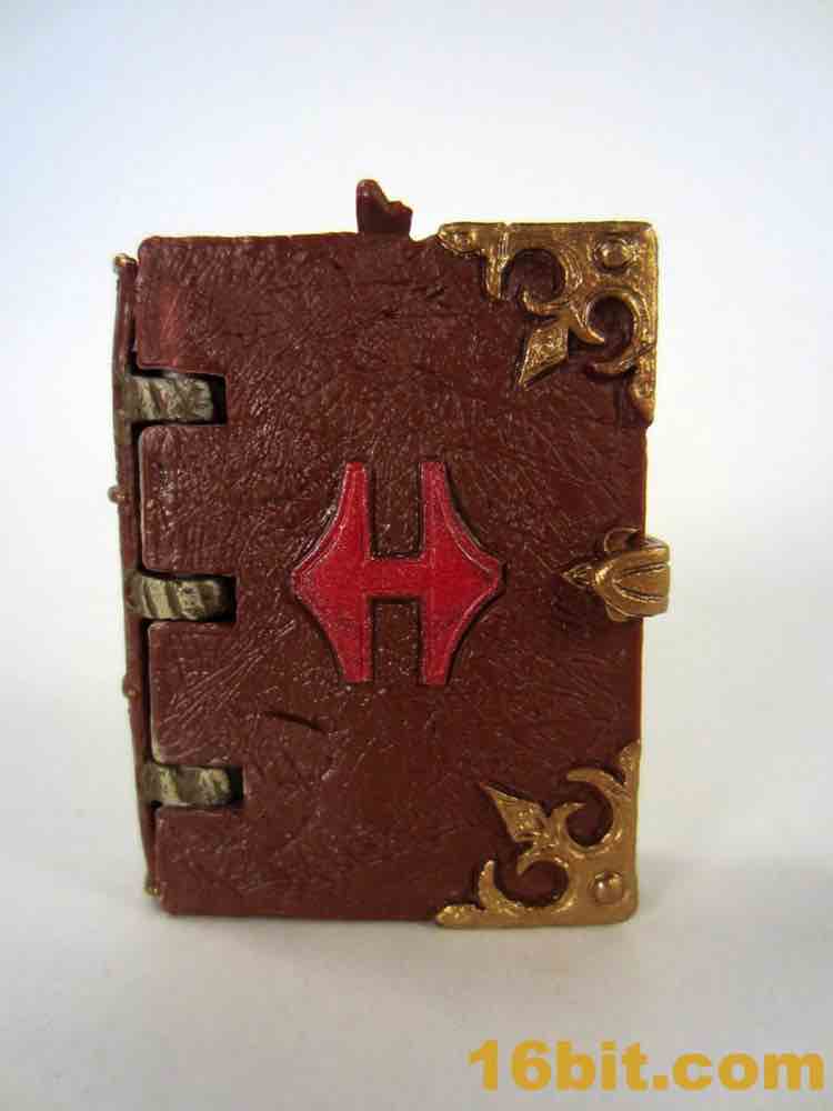 The accessory is notable in that it's both well done and not well done enough. The Book of Living Spells is exquisitely painted and sculpted, easily making it the best book accessory in this or perhaps any other action figure line. The binding is actually jointed, rather than the book being a solid piece or given the plastic which bends and shows stress marks over time. He-Ro's cross is on one cover, He-Man's is on the other, and on the inside... isn't much of anything. Some worn pages, but no pictures or lettering. It's very well done, but any sort of illustration would have been nice - after all, the vintage prototype seemed to have something in there.