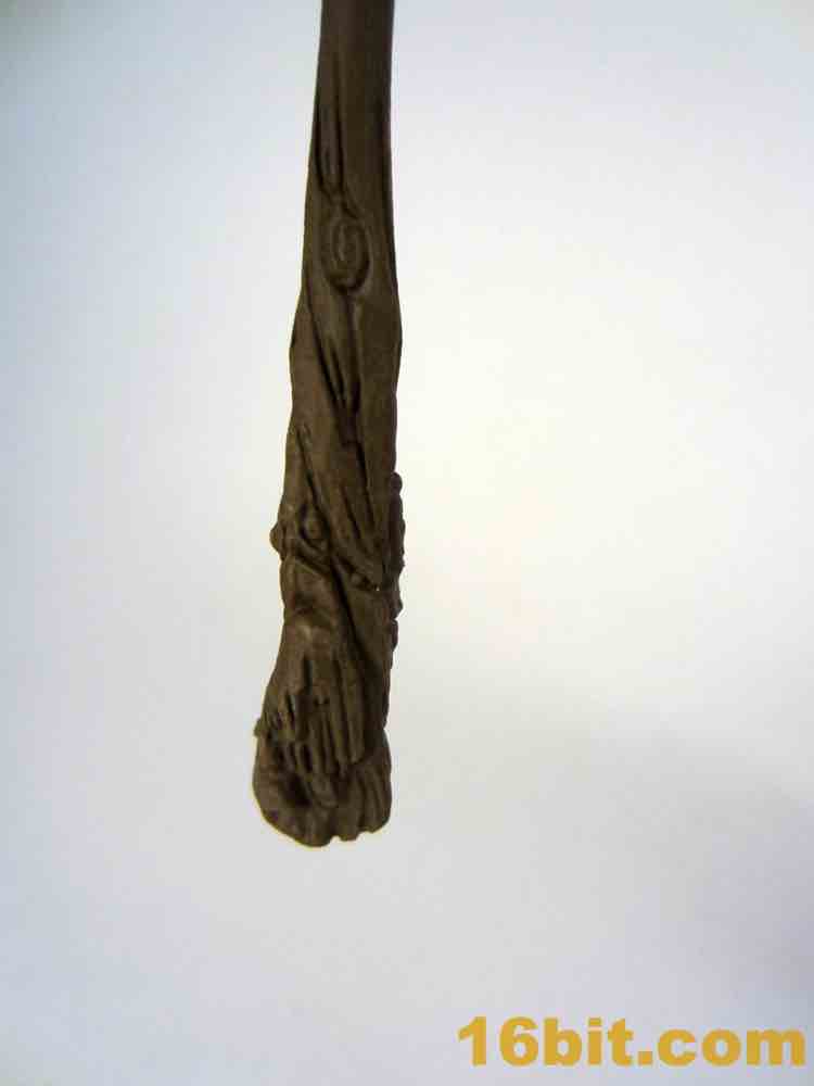 Also included is a swell staff, complete with a clear gem. It's tough to get in my sample's hand as the fingers are incredibly stiff, causing the accessory to bend a bit before fitting in there. This worries me a bit - but it fits. There's a fair amount of gnarled detail and it wouldn't surprise me if actual bits of found wood were used to create it. It's quite nice - and fairly simple. Rounding out the accessories is a removable hood, which fits into his armor pretty nicely. When it is removed, the clamshell jacket looks like the hood was lowered over his back - it's quite clever. I daresay it's more clever than this line gets, so it seems a little out of place.