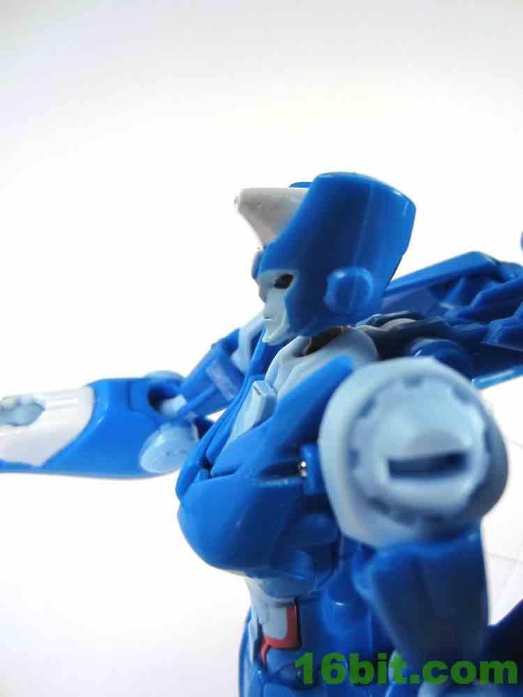 The elbows are also incredibly stiff - I suppose you could file down the plastic, but you shouldn't have to in a line which is celebrating its 30th anniversary. I can only assume this toy, which was delayed a few times, was rushed at the end because it looks really good and is tantalizingly close to being wonderful. I don't regret getting it, but things like hard-to-rotate elbows and legs that fall off aren't exactly fantastic, and the fact that her knee pads look a lot like Thrust/Ramjet/Dirge continues to be very, very strange to me.