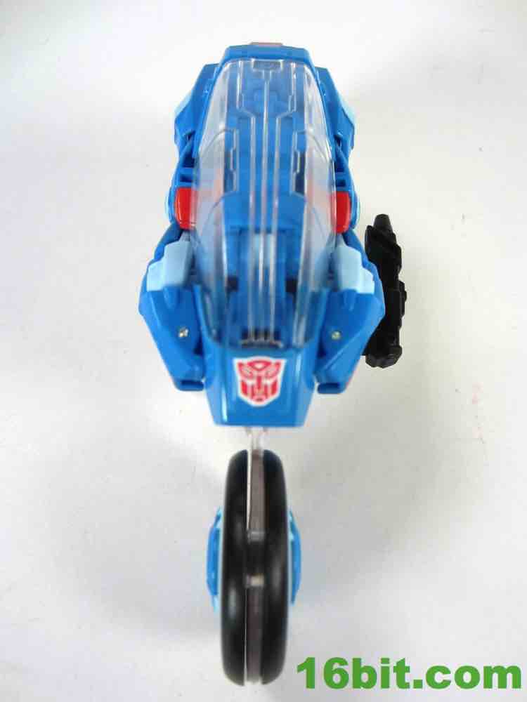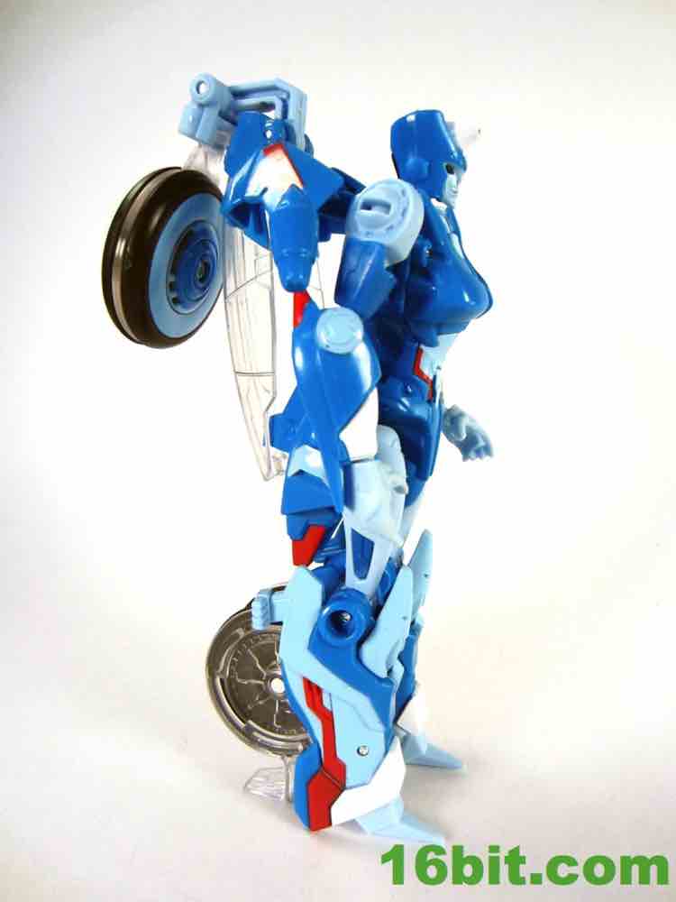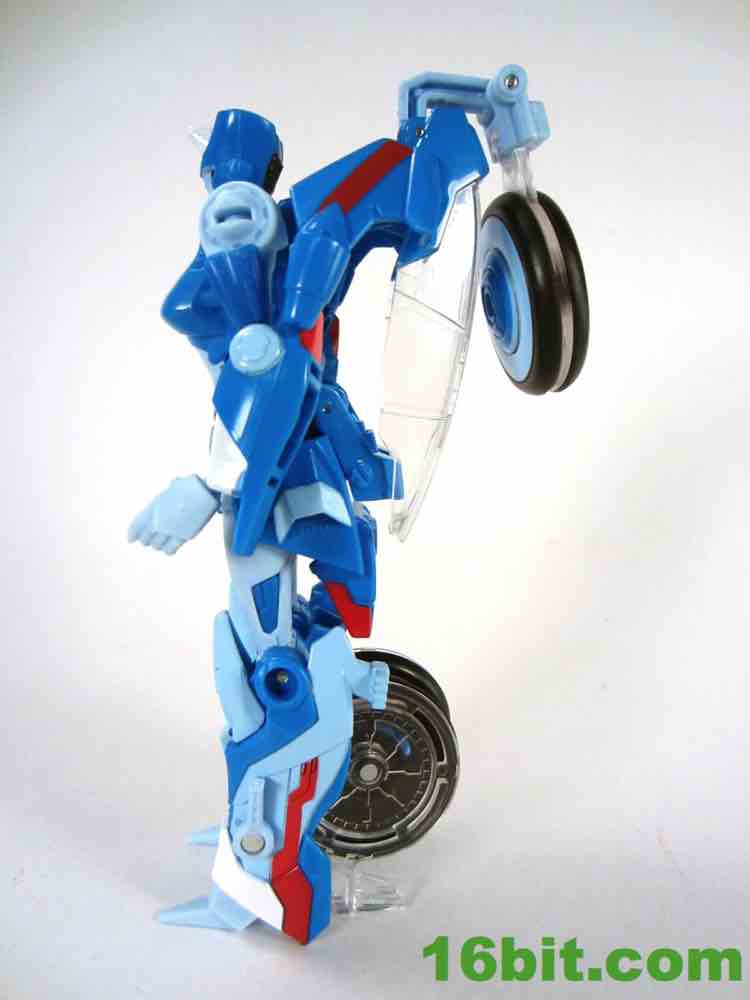 While the character has origins dating back to 1985's "The Search for Alpha Trion", this particular toy owes a debt of gratitude to Transformers Prime. A heavily altered Arcee (the second, "Robots in Disguise" version) means you get yet another blue motorbike with basically the same transformation. Thankfully, it's pretty good. It's bright and colorful with a bright blue and a sharp white that really pops nicely - and if that weren't enough, there are some red markings which really bring her to life. The bright color also just happens to look really good next to Arcee and her movie-based companions like Wheelie, Rodimus, and Kup.