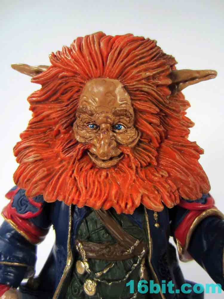 An oft-requested and largely unsuspected figure, Gwildor has one of the absolute most intricate sculpts I've seen in the line. His hair and robes are bonkers - it's very realistic, rather than being very toy-ish. The trim on his robes is amazing - check out the close-ups below, and be amazed. Tiny chains are sculpted and painted, as are buttons on the back of the figure. Mattel decorated details that most companies - and I include Mattel on this list - would leave unpainted. One eye is a tiny bit bigger than the other giving the super wrinkly face a lot of personality. It's both grotesque and wonderful, capturing the feel of short, hairy characters from 1980s toy tie-ins. There were quite a few of them, too.