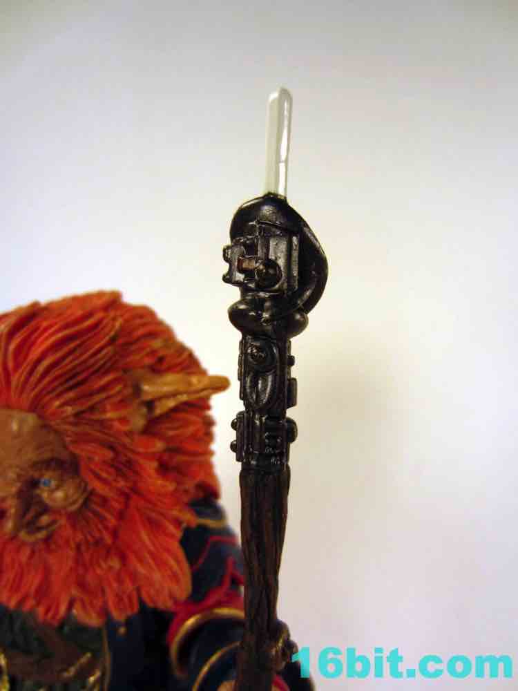 Each Comic Key is basically in the same color as the original toy, wheras Preternia He-Man's was close to the movie coloring. Each one has a series of moving "forks" on the side, which adds a little something to play with for you. His staff has a white tip and some subtle wood shading, so it looks good but it's not immediately obvious that someone put a lot of work into it. Some wrapping around the handle blends in nicely, while the top is a smattering of electronics. It's quite nice.