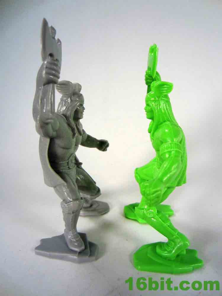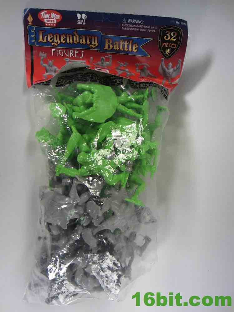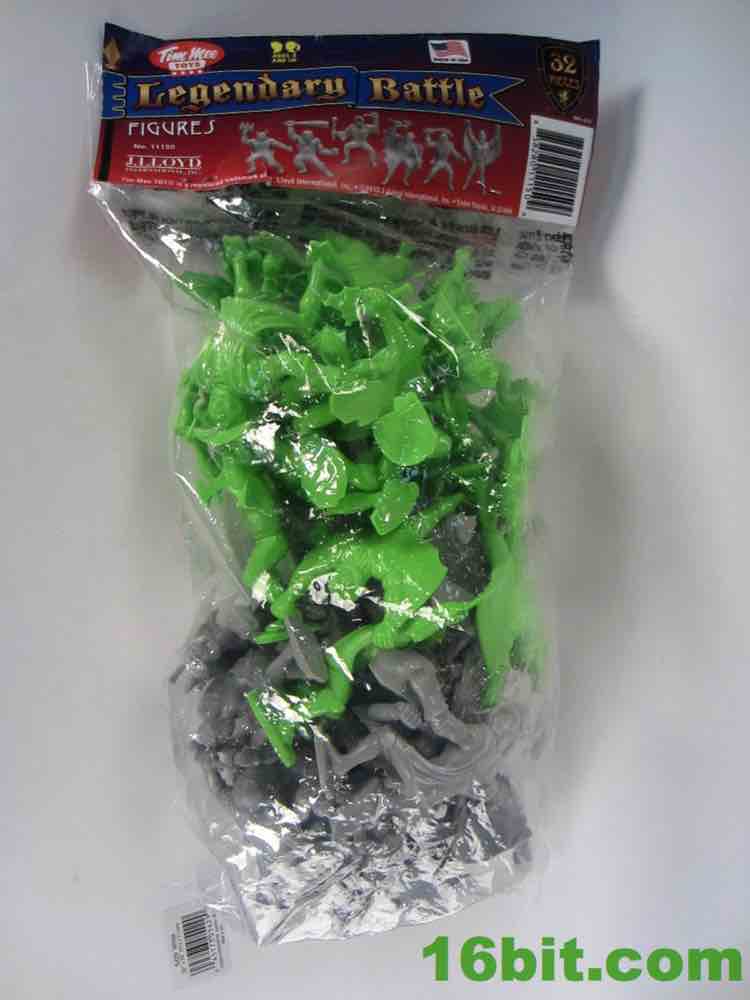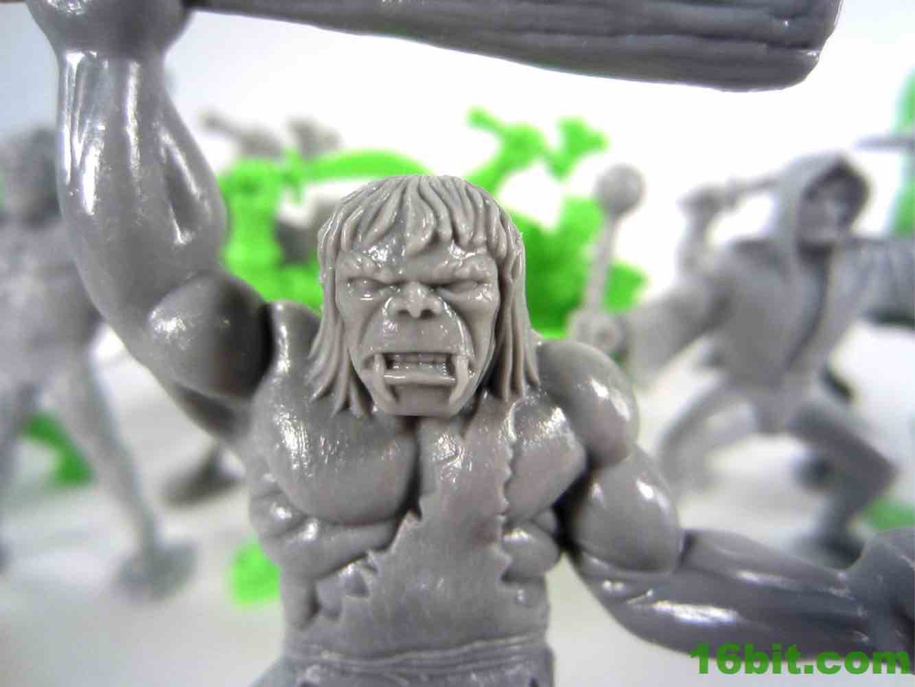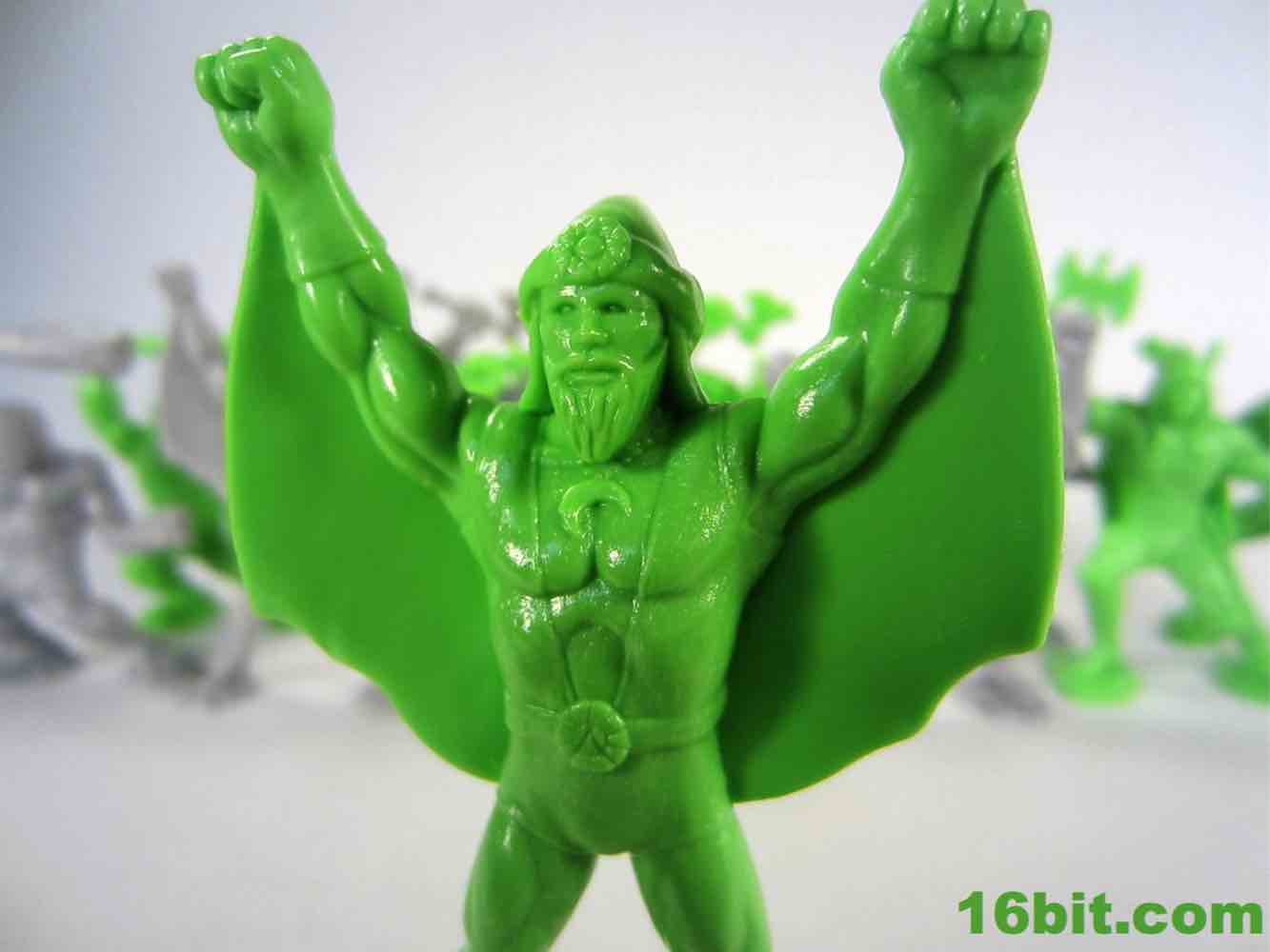 Army men are usually pretty small, but the Green and Grey Legendary Battle Figure Set is a lot larger. Normally toy green army men are around 60mm tall, these clock in at about 80mm - 30% larger, roughly 3-inches tall in some cases. Not only is the quality really good with the best details in the line thus far, but there's also fun history here - they were originally Marvel figures, retooled and reissued as generic fantasy figures that might be at home in your RPG campaign.