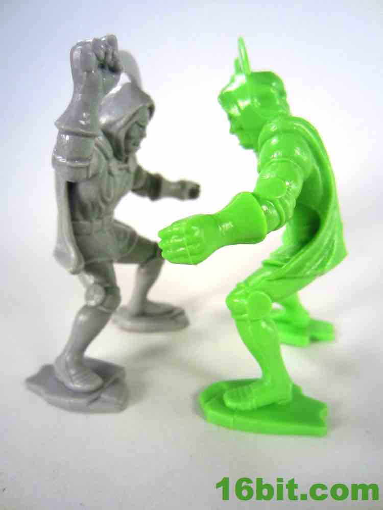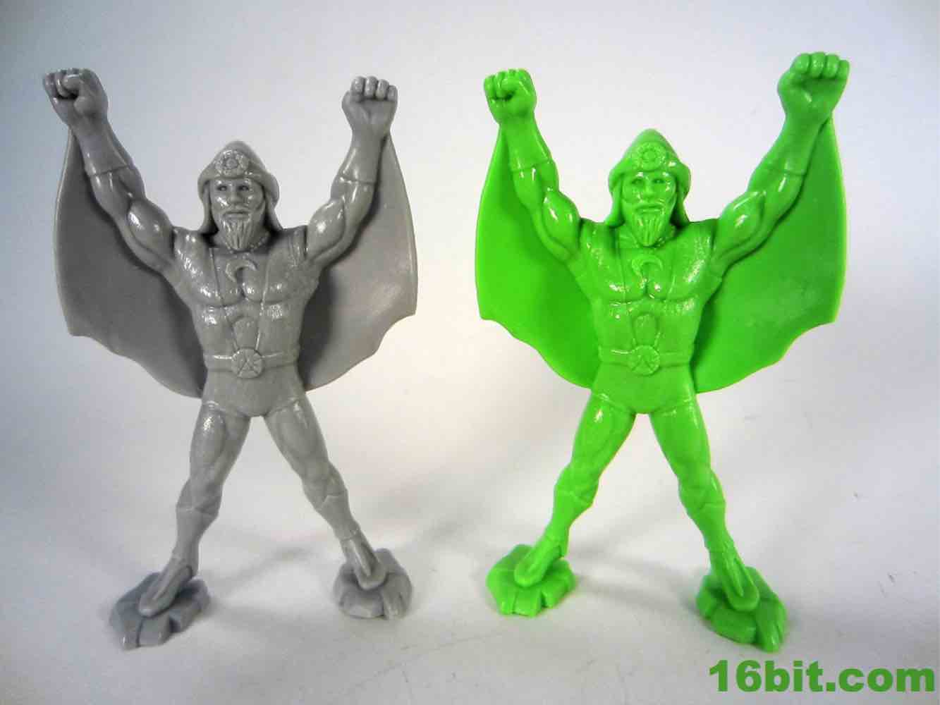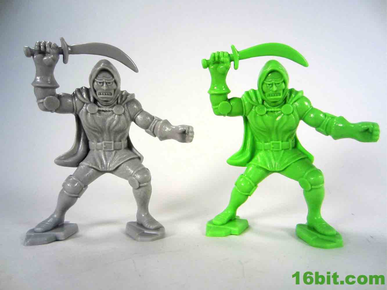 As an unapologetic fan of fixed-pose figures, these are pretty clever. Mixing the Marvel roots with popular 1980s-style fantasy designs really worked here, and the fact that these 2013 reissues are in exquisite condition leads me to believe that they weren't very popular during their initial run. At 40 cents a pop they're not as cheap as other Tim Mee figures, but the size and quality are possibly the best you can get for the price. (The jumbo Galaxy Laser Team Star Patrol are $2.63 a whack.) The figures all look great, but I wish they picked other (or different) colors than grey. It's gorgeous and great for showing off detail, but it matches the Battle Mountain quite closely. These are good, I wish there were more like them - not just more colors, but more characters. They're good examples of what they are - authentic toy industry weirdness with a great story. If I ever meet anyone new who loves RPGs, I'll probably buy them a set (or buy a bag, and give them one set) just because. If you like 1980s weirdness, this is it.