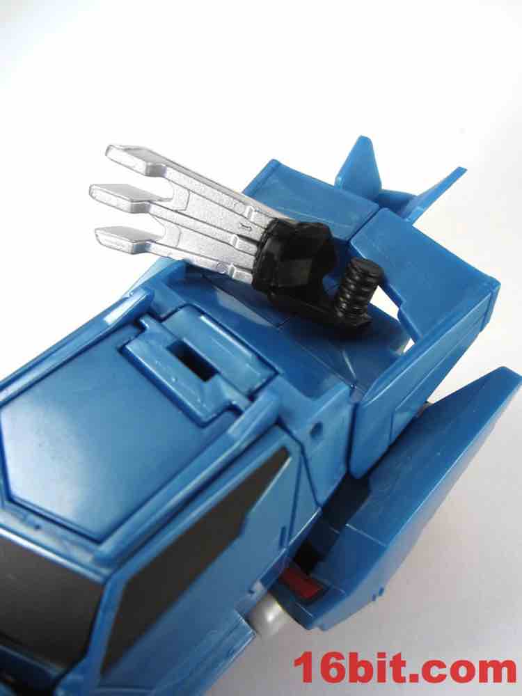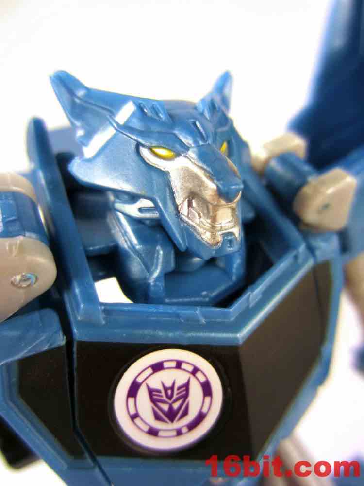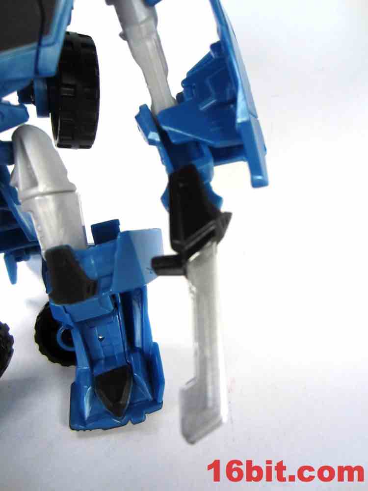 Articulation is acceptable, but rough - the elbows can bend but the right arm feels like it will snap if I keep pushing it. With 15 joints, it's on the lower end of most modern Transformers lines these days as he lacks articulated wrists or ankles. Also, the shoulders come undone pretty easily. The figure requires his tail as a tripod to keep standing upright, and the car windows hanging over the arms are somewhat loose. It makes it easier to convert the figure to vehicle mode making this one of the few reasonably painless toys. Keep an eye on the instructions, but they leave a few bits somewhat muddled - so yeah, you're in for a treat with this one.