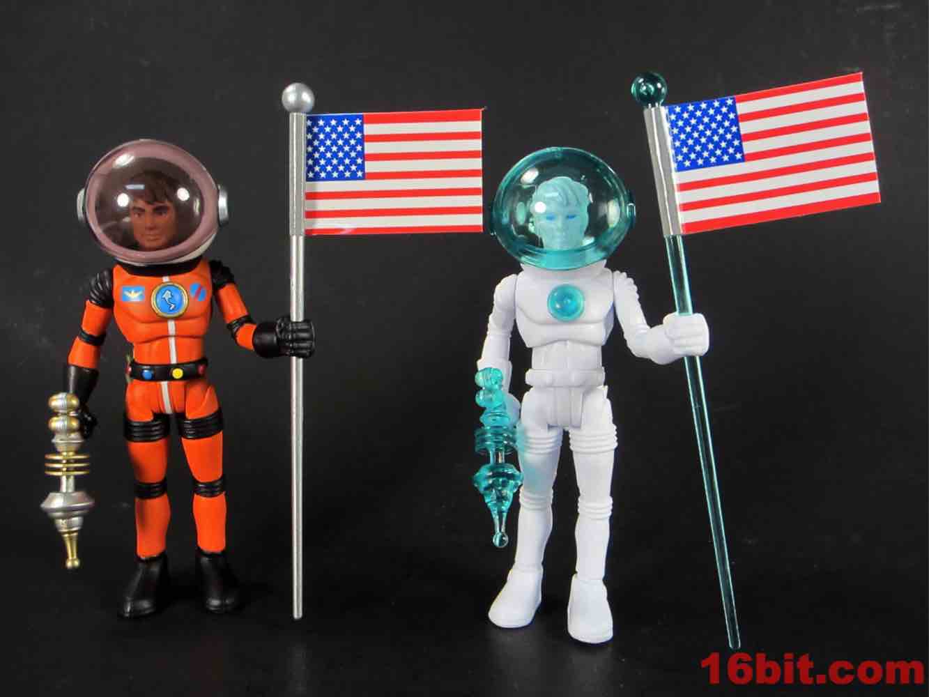 Jack Asteroid is, evolutionarily speaking, pretty good. The orange Alpha Phase figure was pretty wonky with a terrible flag, which the Four Horsemen fixed here (and was subsequently used for the Infinity Phase version earlier this year. The stickiness of the flag is still pretty awful - it's certainly below the usual standards of Four Horsemen figures - but you can squeeze it back together and it'll stay put for a few minutes before pulling itself apart again. The ray gun fits fine in his hand, though, so that's a plus.
