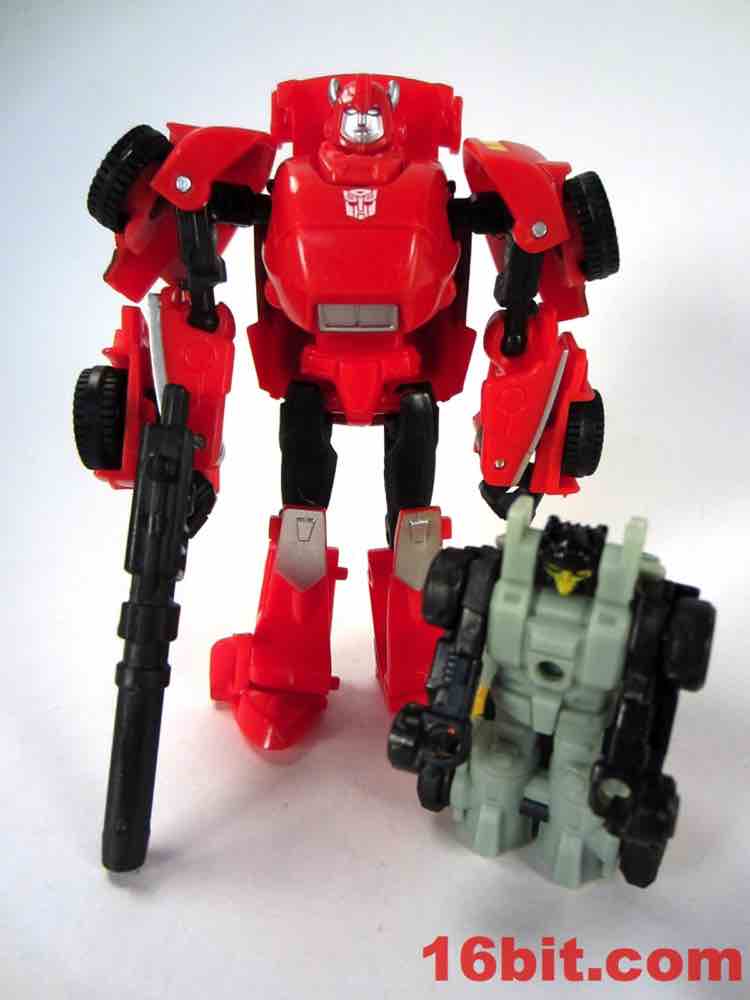 Over the years things change - while Bumblebee was originally a unique mold, Cliffjumper with Suppressor continues a relatively recent tradition that is as follows: a red Bumblebee equals Cliffjumper. Sometimes they get a new head, but usually it's just new coloring. In this case, I would argue the figure actually looks better as Cliffjumper than Bumblebee - making this another swell repaint.