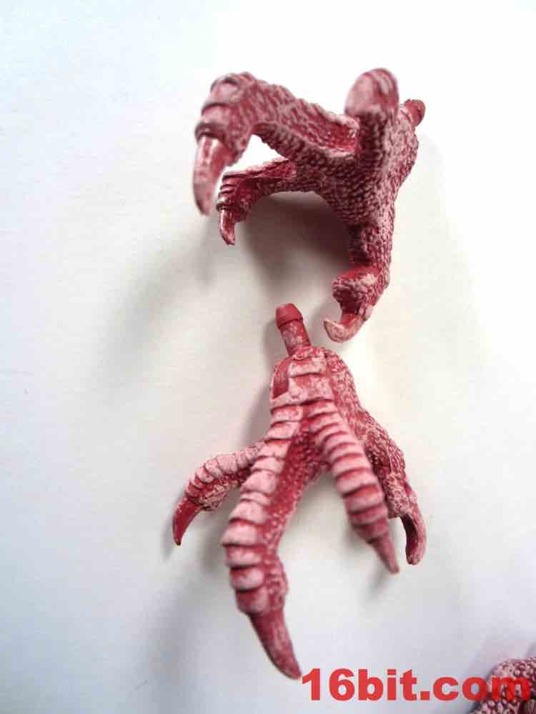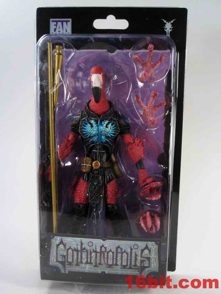 The great thing about the Gothitropolis Reven figures were that they kept changing as the line went. Various figures and body parts were added as the line continued, with more optional feet or wings or characters. For example, Flamingus was a stretch goal for the $170,000 pledge level on Kickstarter. (The initial goal was $65,000, and it ended at $303,666.) This was one of the figures I simply had to have - there were six I really wanted, and I dropped the cash for five. I'm glad I did, because Flamingus (along with Minotaur the Duck) included another bonus stretch item - webbed duck feet! They came bagged in the package and I immediately swapped them in for the boring normal claws.