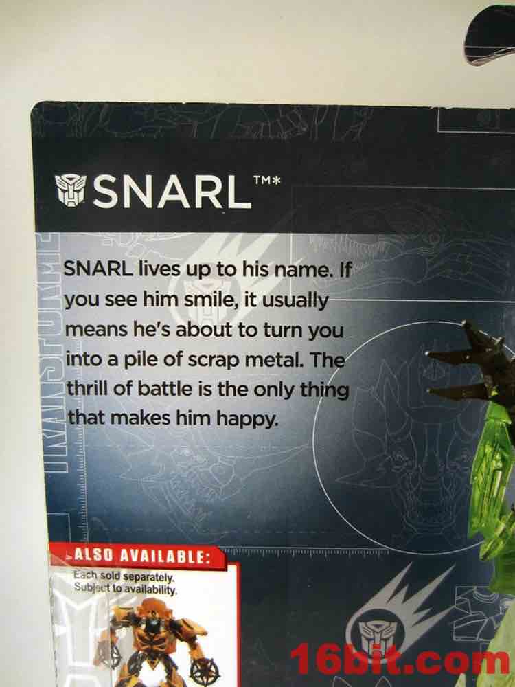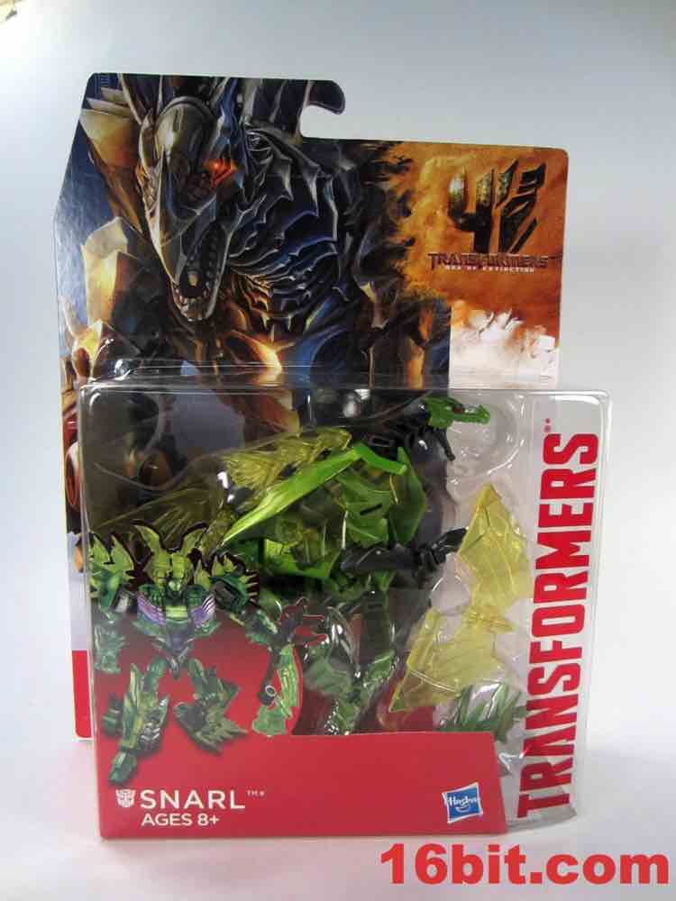 On one hand, the "movie" Snarl is pretty great. It feels a lot more sturdy than the Comic-Con gold version, which is pretty but the gold paint seems to flake off in your hands. This figure is an interesting specimen in that it's a "movie toy" that doesn't appear in the movie - the same can be said of a few other toys from this line, plus it was a fairly late release in the compressed fourth movie toy line. As of late 2014, some of the toys hadn't yet hit in the USA leaving some doubt as to when or if they would. Given the massive resources it takes to build a toy line and the difficulties coming from movie-specific toys being designed 18 months prior to its release, based on unfinished concept arts and even incomplete scripts, I can't help but wonder if this may be a sign of things to come. Will movie toy lines have less variety of characters, but more flavors of the heavy hitters like Optimus and Bumblebee? Could we see a turn to what happened with video games - Batman and Marvel movie tie-ins are quickly becoming a thing of the past, with games being games, and movies being movies. Could "movieverse" Transformers be adopted into a main line of multi-generational toys someday? Probably not soon, but given how cool Snarl is despite not being in the movie it seems like it's not a huge leap to envision that sort of future.